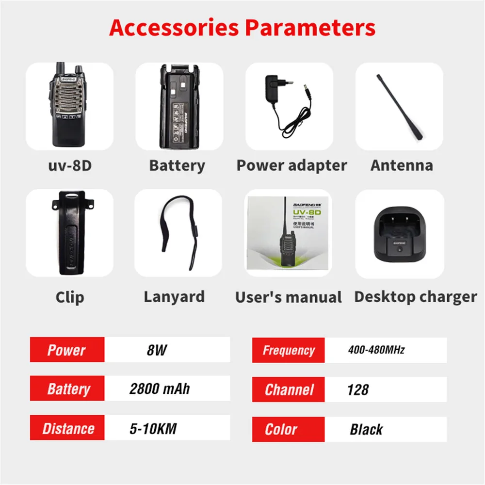 Высокая мощность 8 Вт Baofeng Walkie Talkie UV-8D ручной двухсторонний радиоприемник HF приемопередатчик UHF портативный Радиоприемник UV82 радио FM приемопередатчик