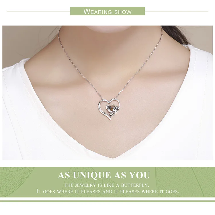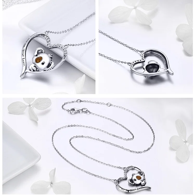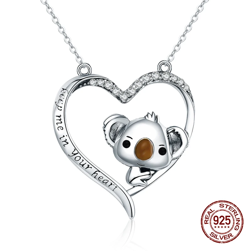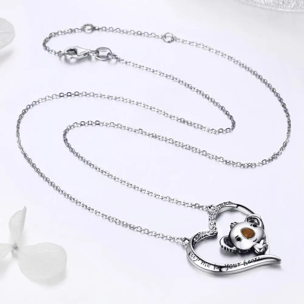 Лидер продаж, подлинное серебро 925 пробы, кулон в виде сердца, ожерелье коала для женщин, модное ювелирное изделие из циркона для девочек, подарок на день рождения, свадьбу