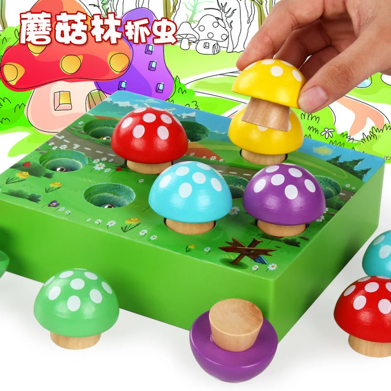 Деревянные магнитные рыболовные игрушки Монтессори, интересная игра в грибы, лес, поймай червя, развивающая головоломка, игрушки для детей, подарок