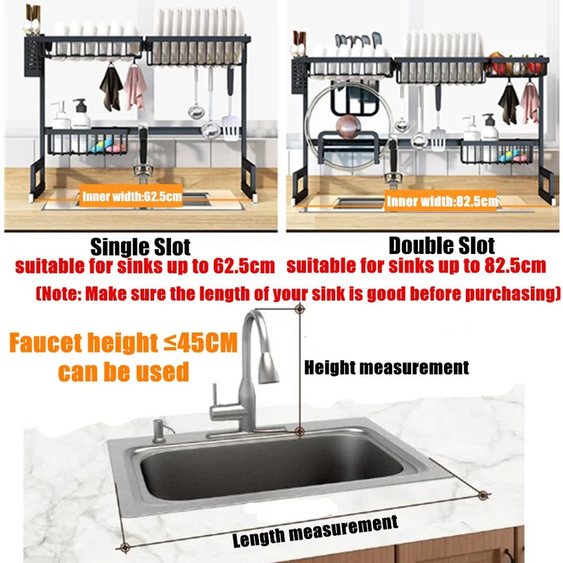 6585 см кухонные полки Держатели для хранения над раковиной из нержавеющей стали миска для посуды Органайзер принадлежности для хранения посуды в черном цвете