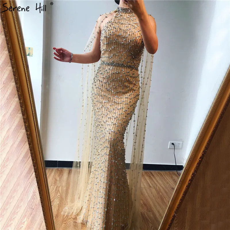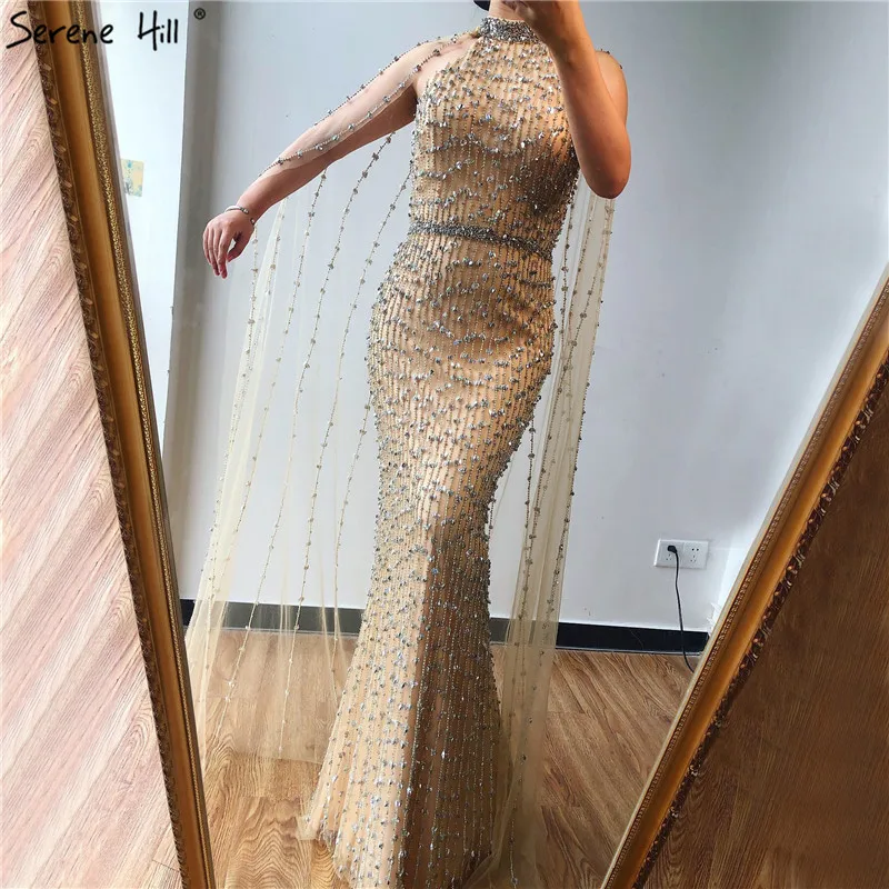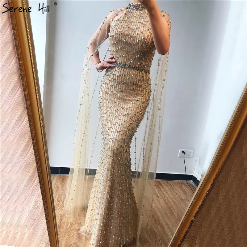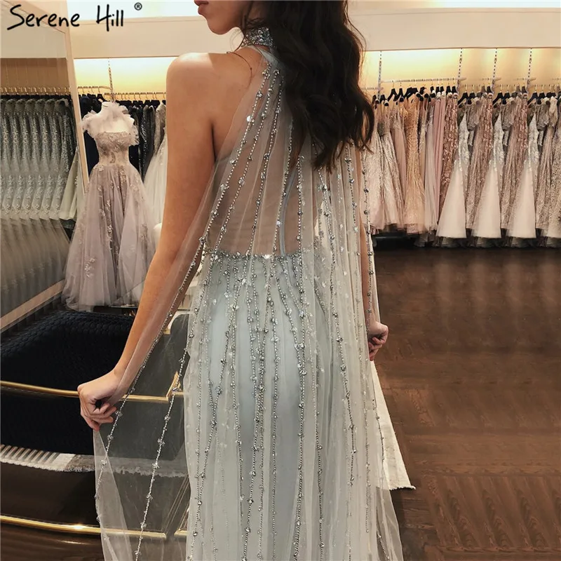 Дубай Серебро Роскошные Русалка Вечерние платья дизайн без рукавов сексуальное Бисероплетение Иллюзия формальное платье 2021 Serene Hill LA70087