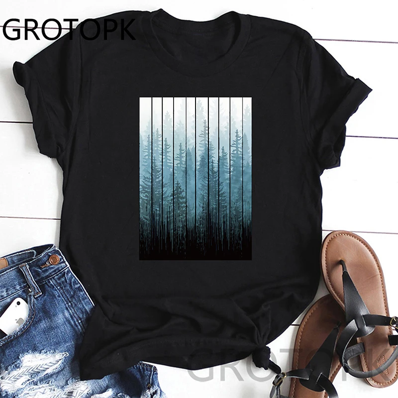 Женские летние футболки Mist Forest, черные женские Топы в стиле хип-хоп, футболки, винтажная Повседневная футболка, уличная одежда, футболка, одежда