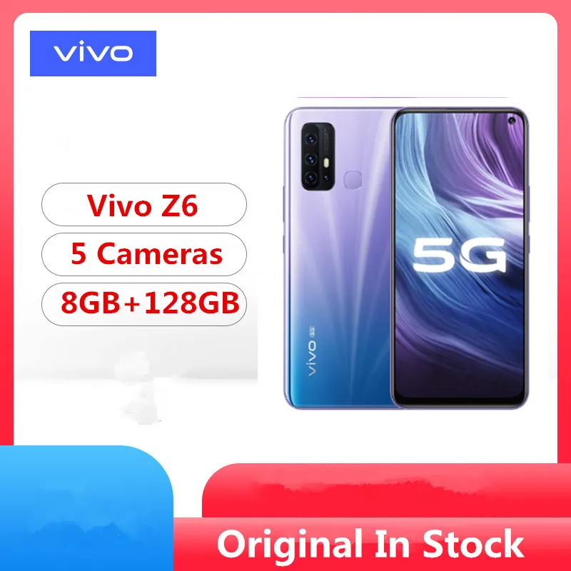 В наличии Vivo Z6 5G Смартфон Snapdragon 76 5G Android 10,0 6,57 "2400x1080 48.0MP + 16.0MP + 8.0MP + 2.0MP + 2.0MP 44W зарядное устройство 5000 мАч