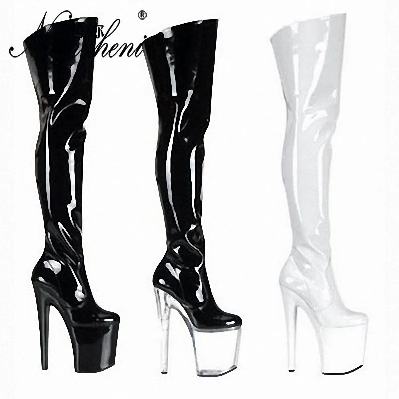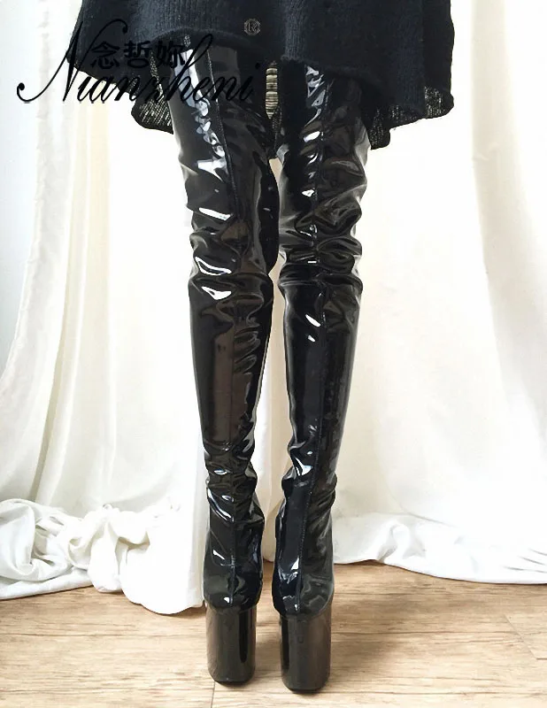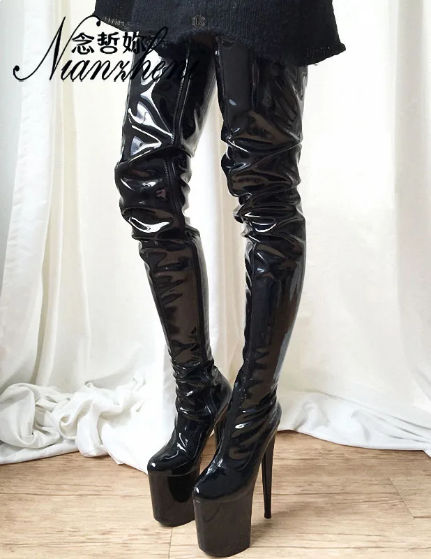 Пикантные Сапоги выше колена в стиле панк для танцев на шесте высокий каблук 8 дюймов 20 см Фетиш обувь готические армейские черные женские сапоги на платформе стрипы pole dance стрипы ботфорты женские Модные сапоги