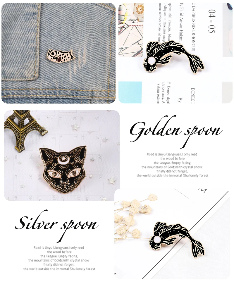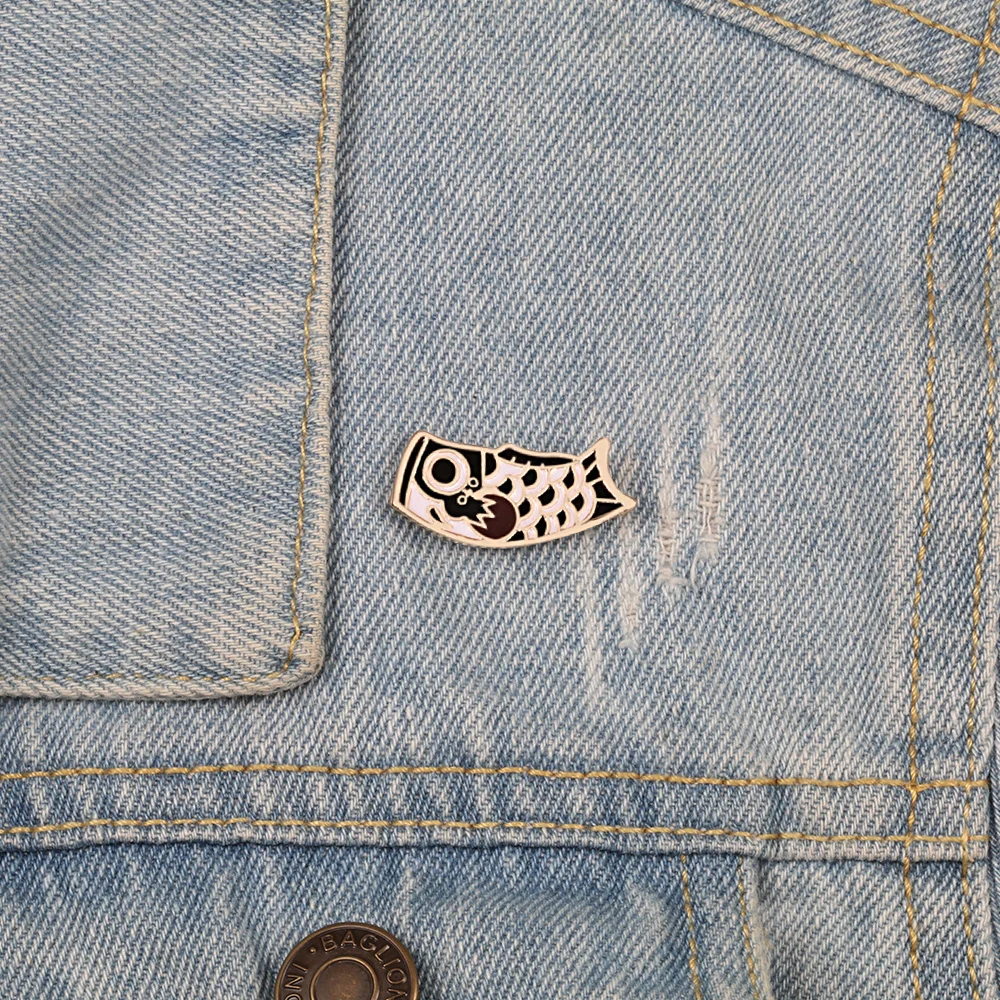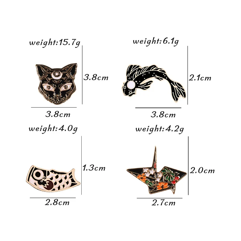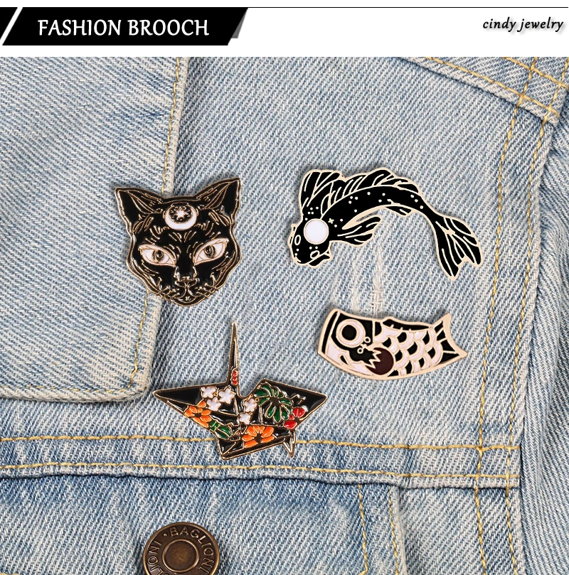 Черная брошь с котом кои, милая Золотая рыбка, эмалированная булавка, джинсовые булавки на лацкан, значок с японской рыбкой, оригами, журавль, модные украшения, подарки на благословение