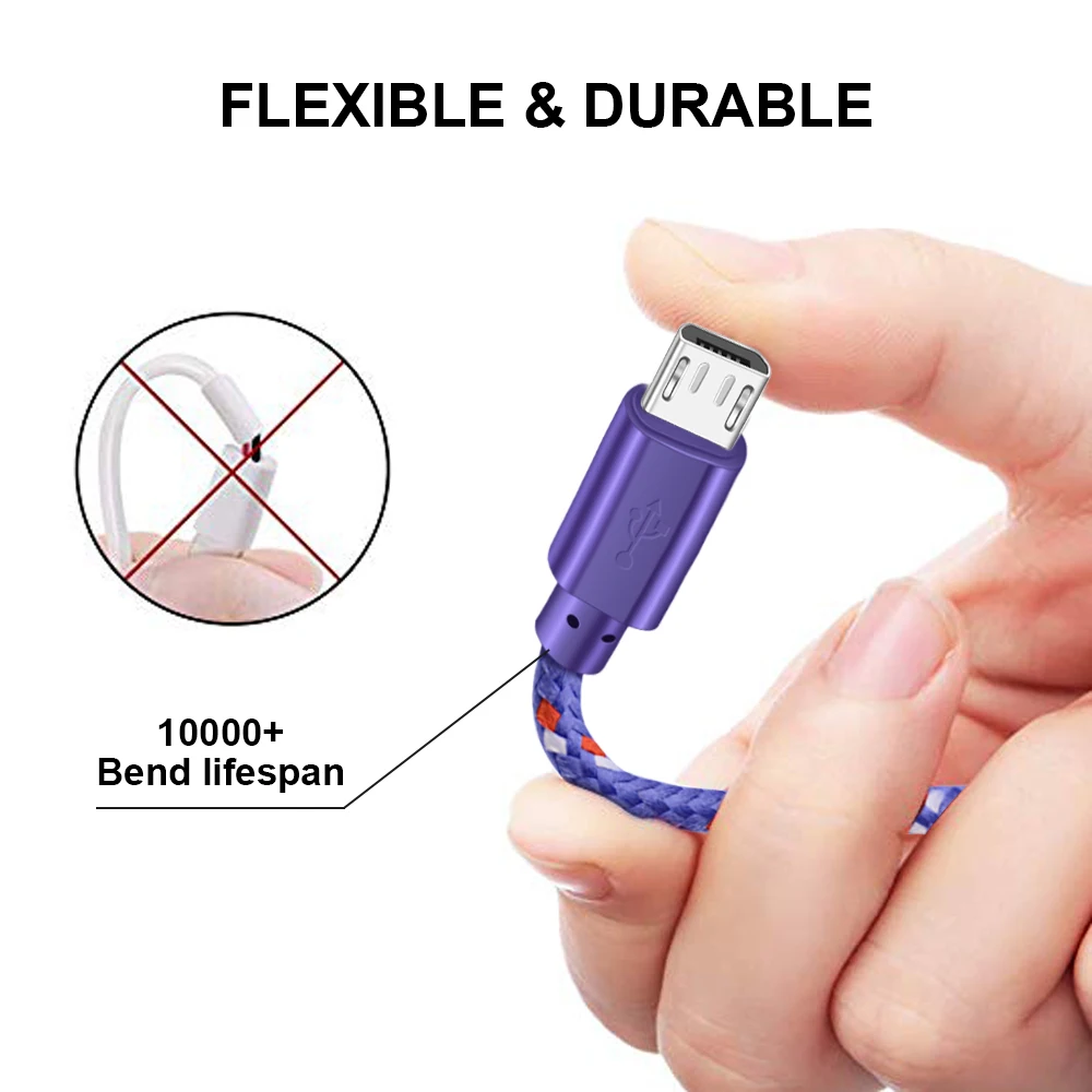 Кабель USB Micro usb, 1 м, 2 м, 3 м, нейлоновый, с поддержкой быстр...