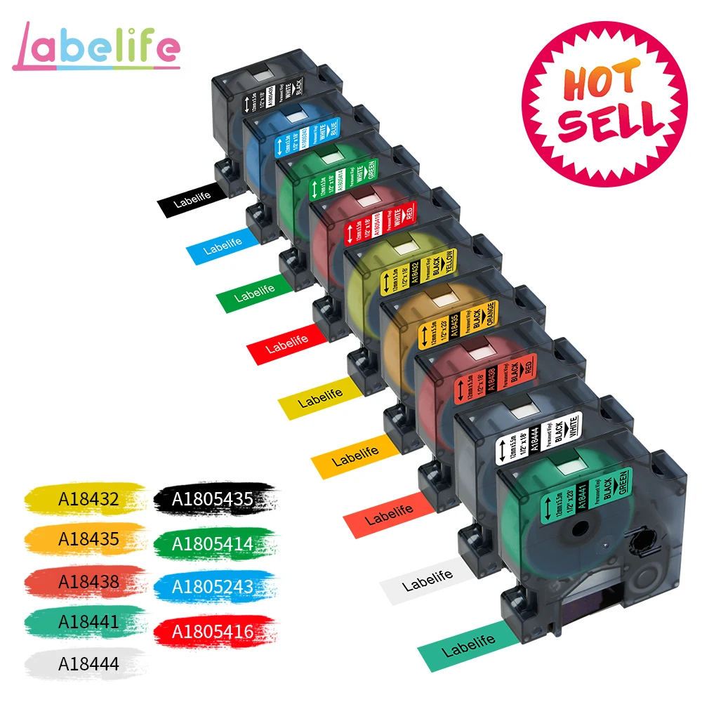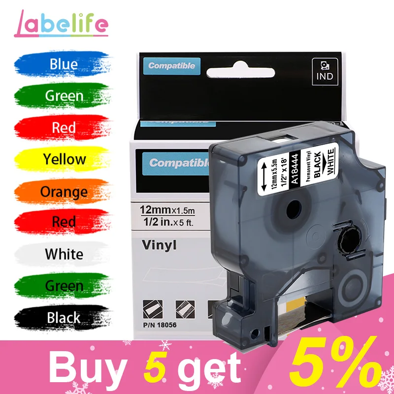 Промышленная цветная виниловая этикетка, 1 шт., 18432, 18435, 18438, 18444, совместимый с DYMO Rhino, 9, 12, 19 мм, для этикеток DYMO Rhino 4200,5000