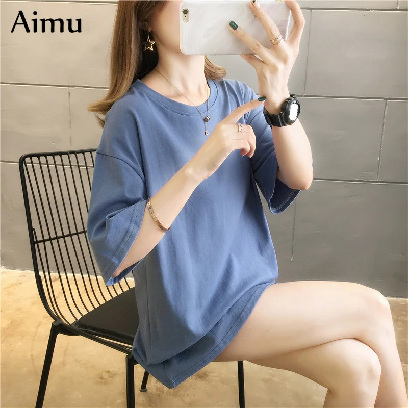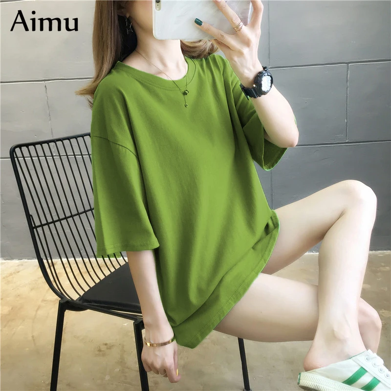 Летняя женская футболка в стиле Харадзюку, однотонные футболки, студенческие корейские повседневные свободные топы с коротким рукавом, розовые и белые топы, женская футболка в стиле 90-х, 2021