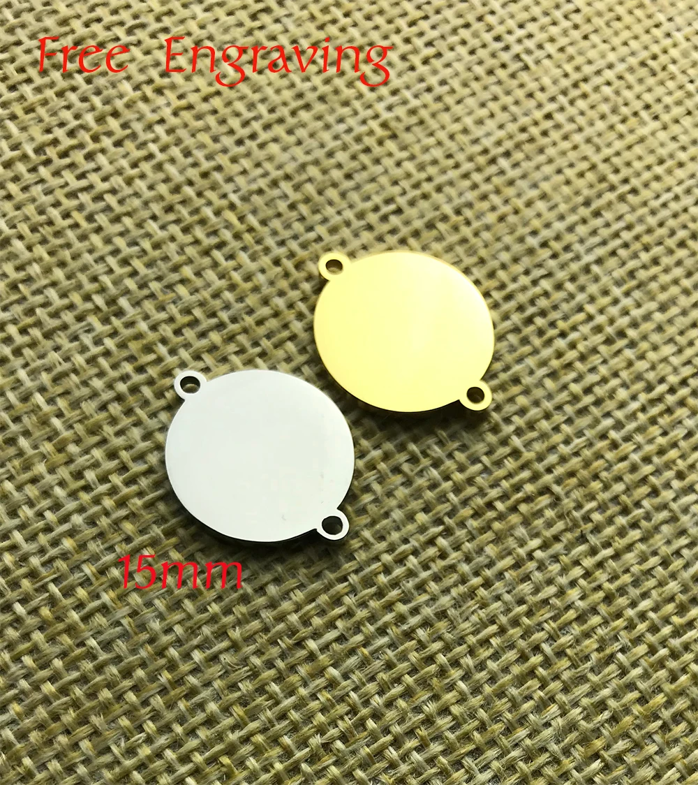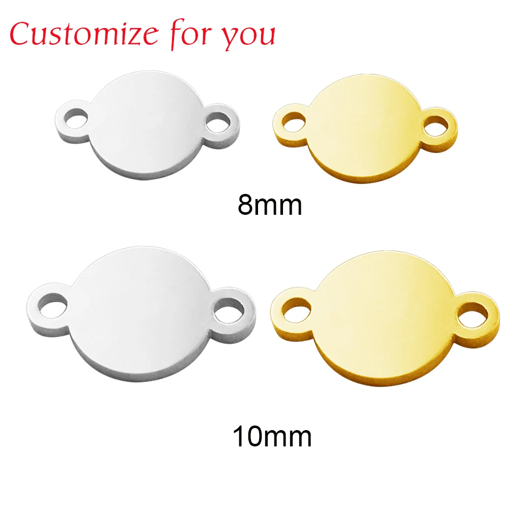 MYLONGINGCHARM Бесплатная engraving-50pcs 8 мм 10 мм 15 мм 2 отверстия Круглый стальной соединитель Заказной браслет Шарм-Пользовательский логотип или дизайн
