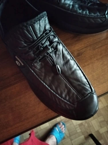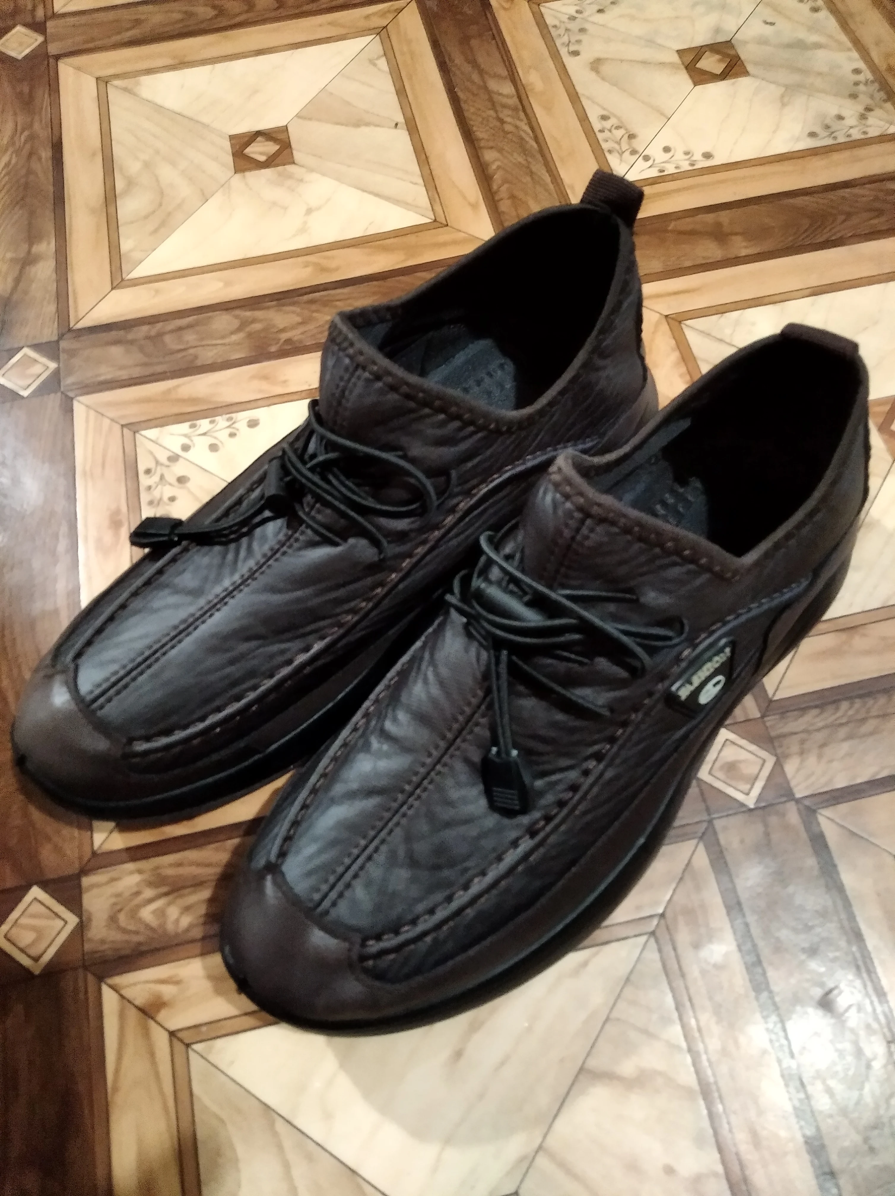 Туфли мужу понравились,конечно,поверхность не кожа,запах неприятный,внутри мех,очень лёгкие,удобные,посмотрим как будут носиться. Трек отслеживался,на таможне висел 3 недели,но это не вина продавца.