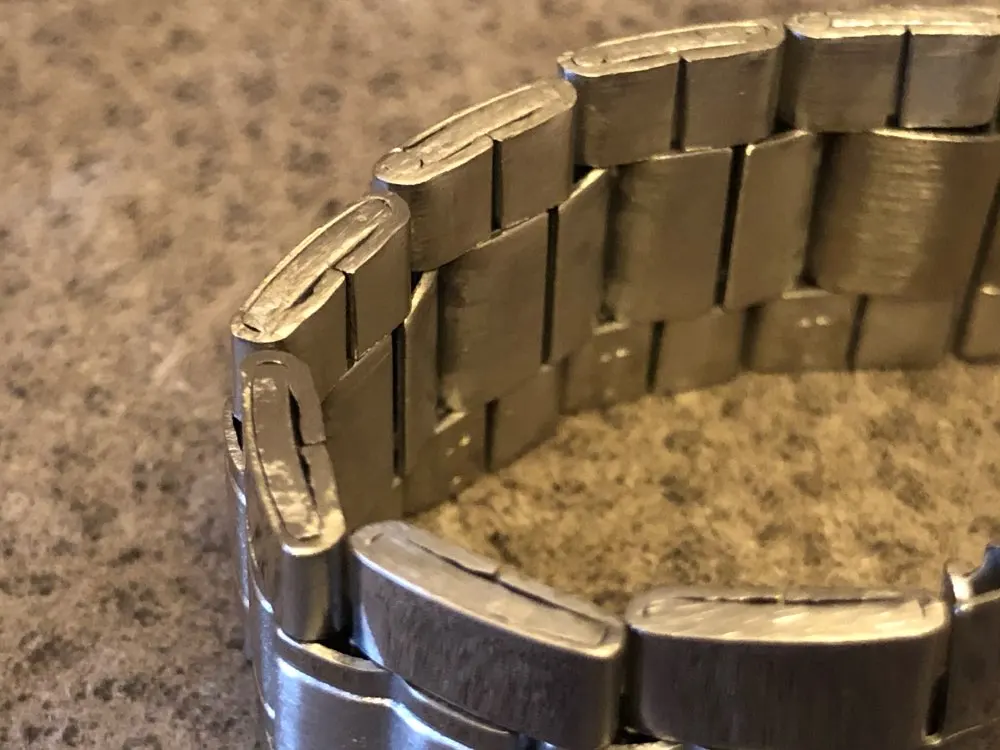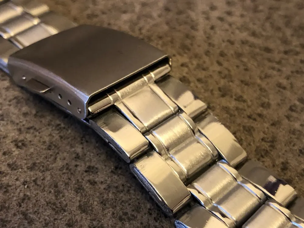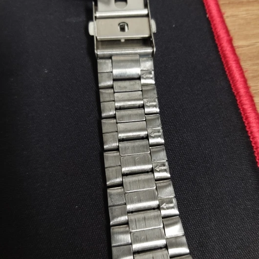 В целом соответствует стоимости. Аккуратно упакован, затянут в плёнку, товарный вид отличный. Замок хлипкий и нечеткий, очень плохо открывается - запорые пластинки цепляются за острую кромку грибка, нужно трясти замок, чтобы они соскочили и браслет расстегнулся. При снятии звена очень трудно вставить ось обратно, потому что торцы браслета шлифовали в сборе и на торцах оси микрозаусенцы - дорабатывается двумя ширками надфиля - и все отлично входит на место.