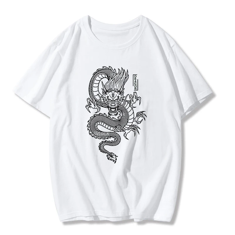 Уличная женская футболка ulzzang Harajuku, Винтажная Футболка с принтом китайского дракона, летняя новая свободная повседневная женская футболка большого размера