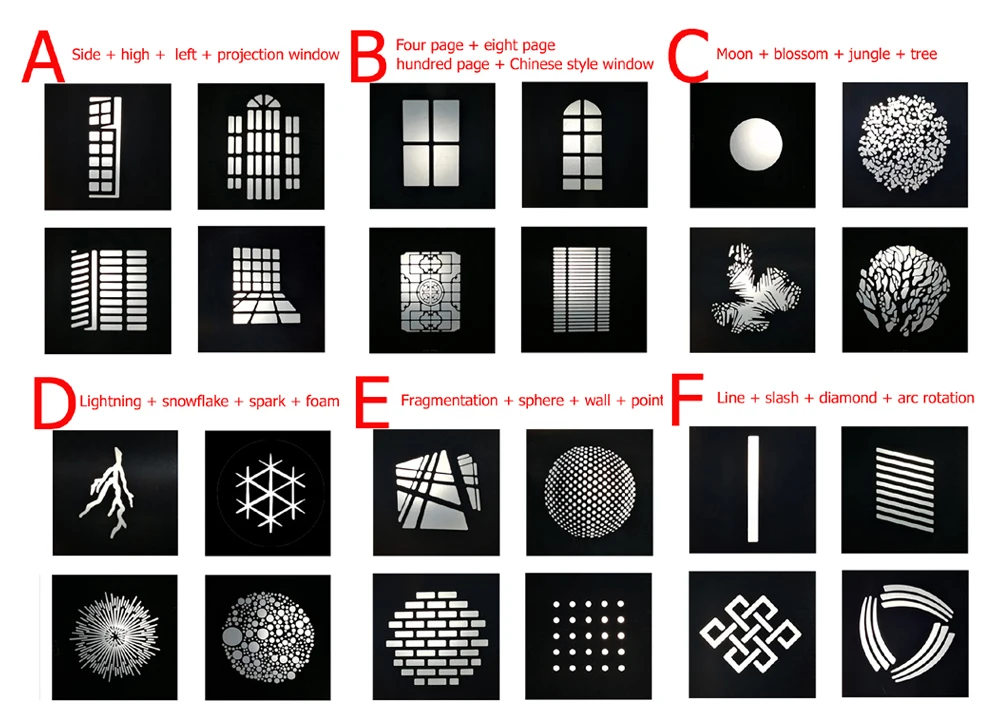Набор GOBO: вставив GOBO в отверстие для крепления проекции,