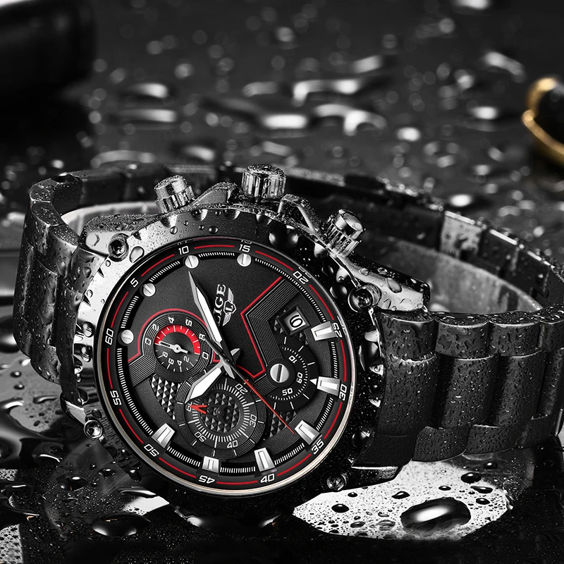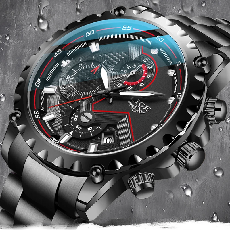 Часы мужские из нержавеющей стали, водонепроницаемые, с хронографом