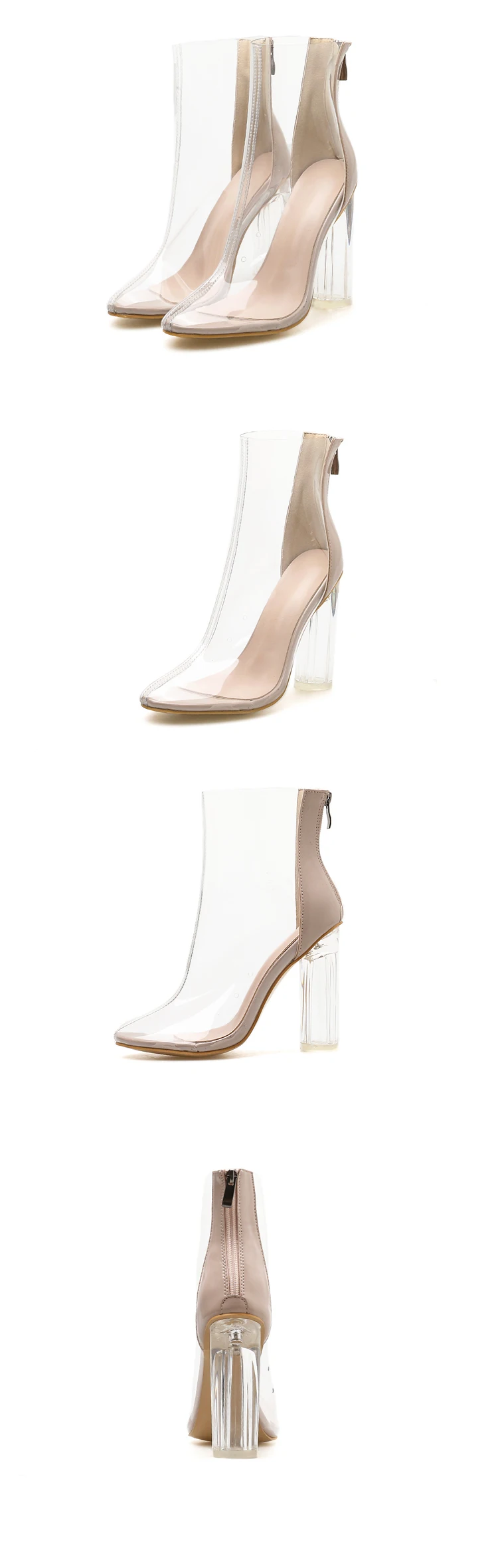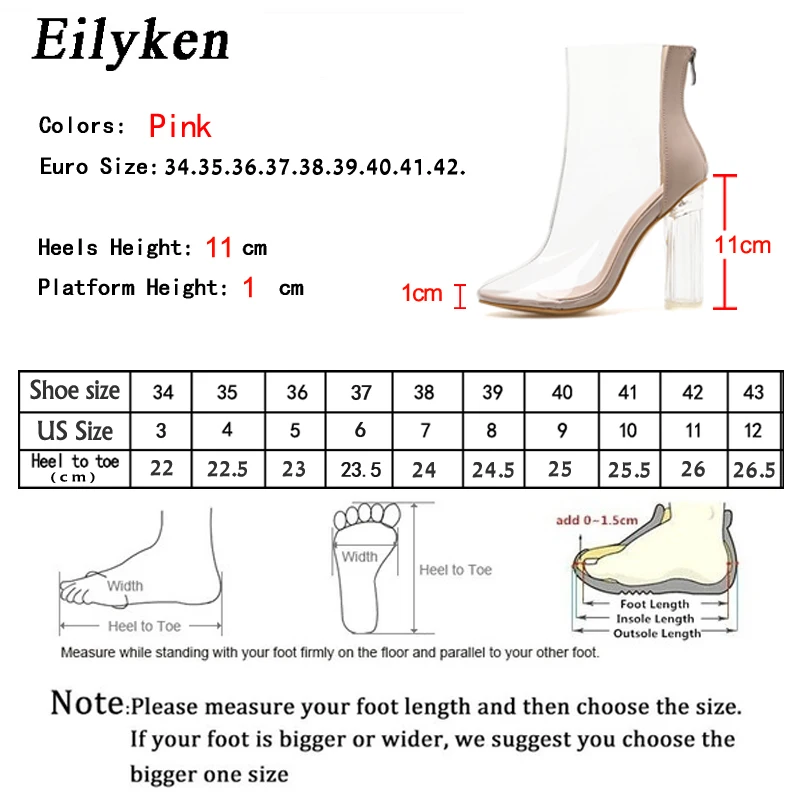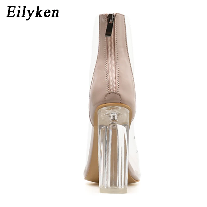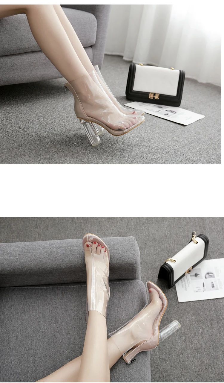 Eilykenсезон весна-осень; Новые женские ботильоны с круглым носком из прозрачного ПВХ на молнии; Ботинки Челси на высоком квадратном каблуке с украшением в виде кристаллов