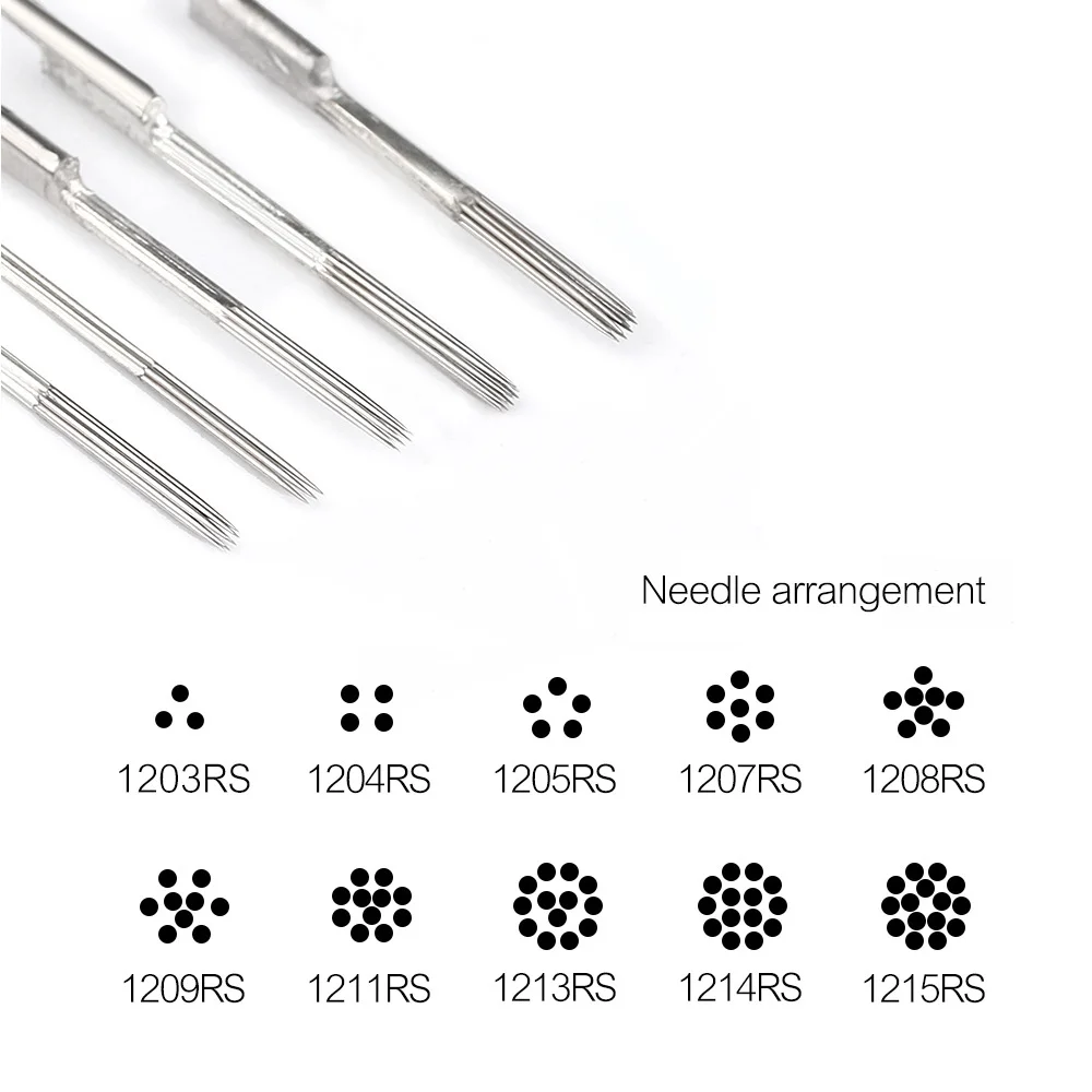 50 шт. одноразовых смешанных игл для татуировок + 50 шт. наконечников в ассортименте по стерильные одноразовые для татуировок, 5 шт. каждого 3rl, 5rl, 7rl, 7rl, 3rs, 5rs, 7