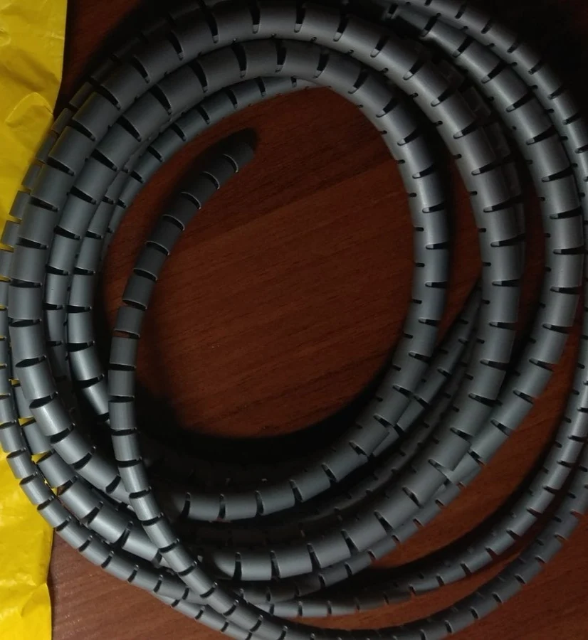 Пластик дешманский. Не спиралькой, надо будет еще постараться одеть на провода. Доставка получилась быстрая. Продавцу спасибо.