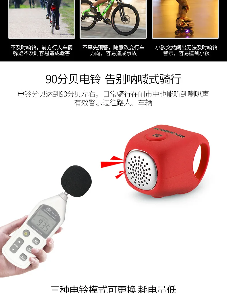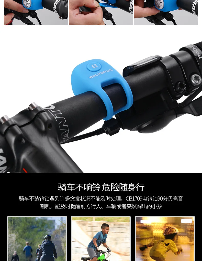Звонок велосипедный ROCKBROS Электрический с защитой от дождя, 90 дБ