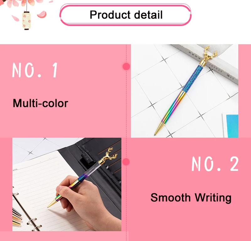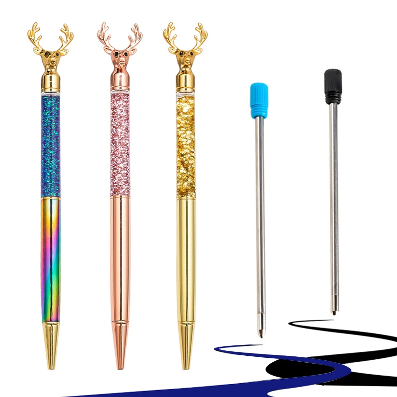 4 шт.компл. Ручка-роллер, вращающаяся 1,0 мм голова оленя, масляные металлические роскошные шариковые ручки, черный и синий цвета, наборы для заправки Kawaii, Детские стационарные