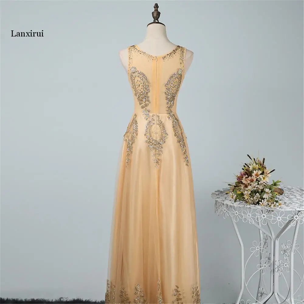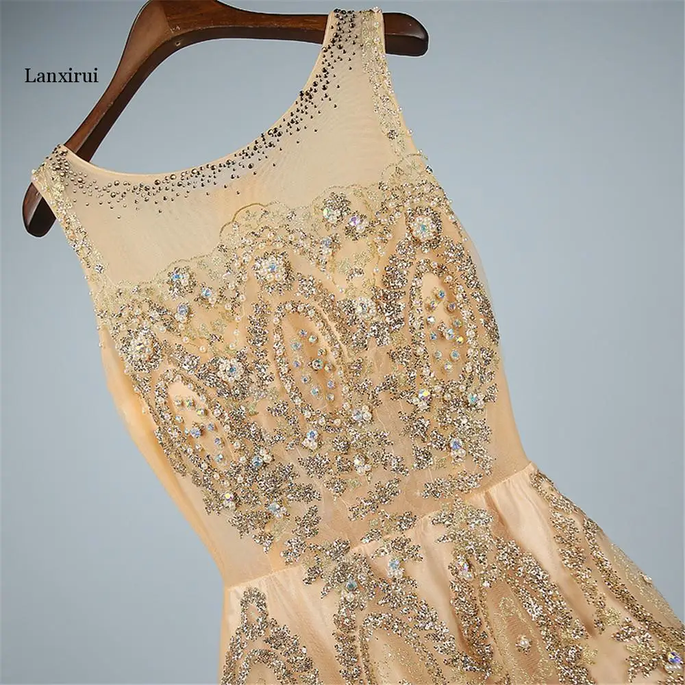 Женское вечернее платье-трапеция, элегантное Прозрачное платье с декором из бисера из хрусталя, длинные платья из тюля без рукавов