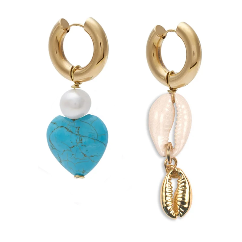 Женские асимметричные серьги в форме сердца, из натурального камня, необычные, свадебные, 2020