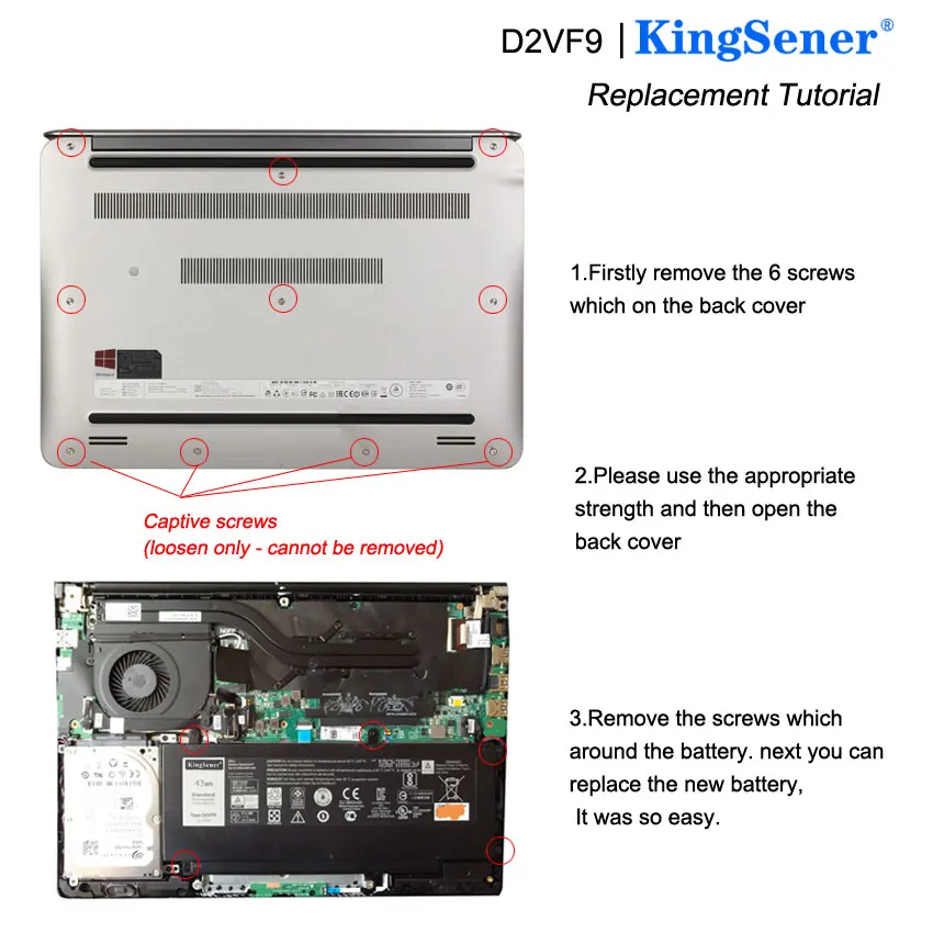 Аккумулятор KingSener D2VF9 для ноутбука Dell Inspiron 15 7547 7548, для серверов Vostro 5459 0PXR51 0YGR2V P41F P68G 4P8PH PXR51 43WH