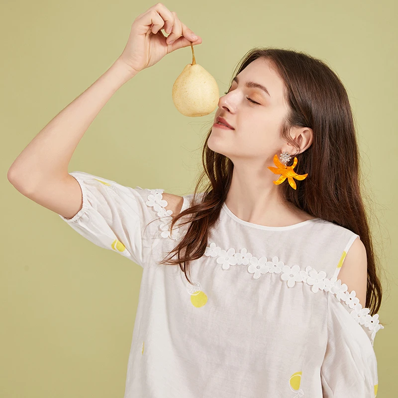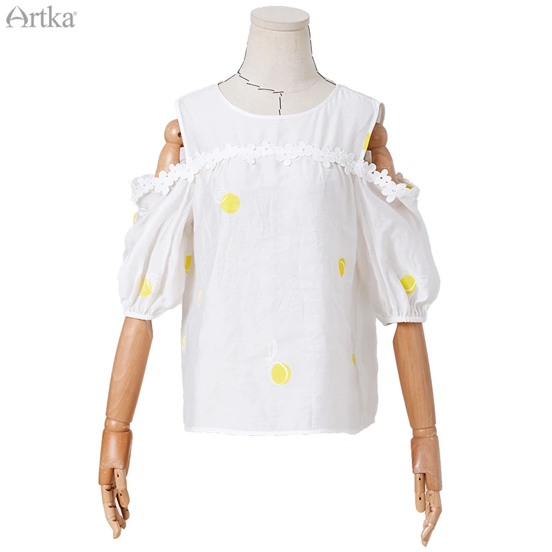 Женская шифоновая блузка ARTKA, белая Свободная блузка с открытыми плечами, кружевная рубашка с коротким рукавом, лето 2020