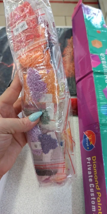 картина получена не ожиданно быстро ,шла с отслеживанием ,упаковка хорошая ,все в порядке ,алмазики в ЗИП пакетиках ,пинцет и все остальное к картине прилагается ,размеры как заявлено 20 х 30 ,остальное после выкладки ,продавцу спасибо ,удачных продаж продавцу спасибо за подарочек ,очень приятно