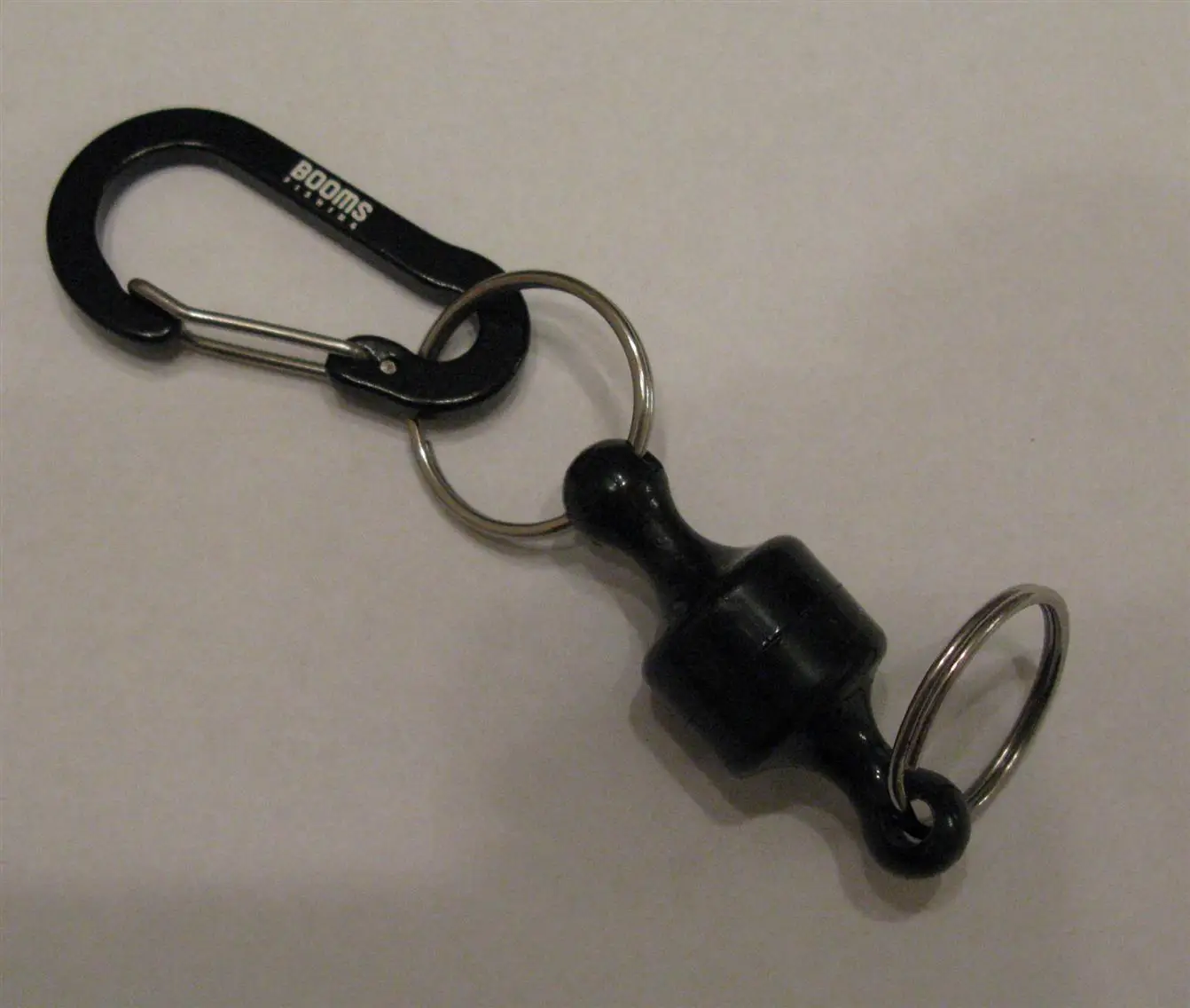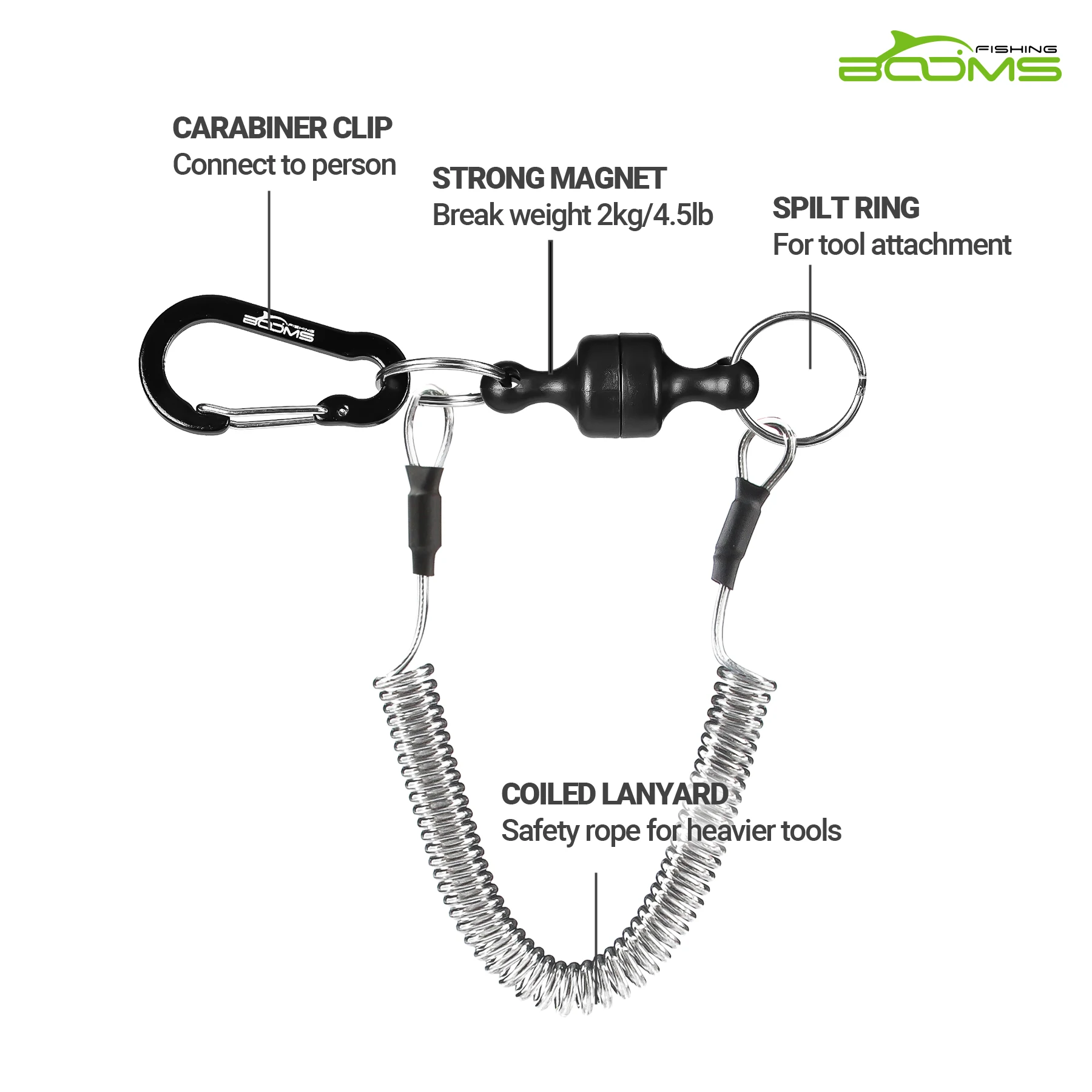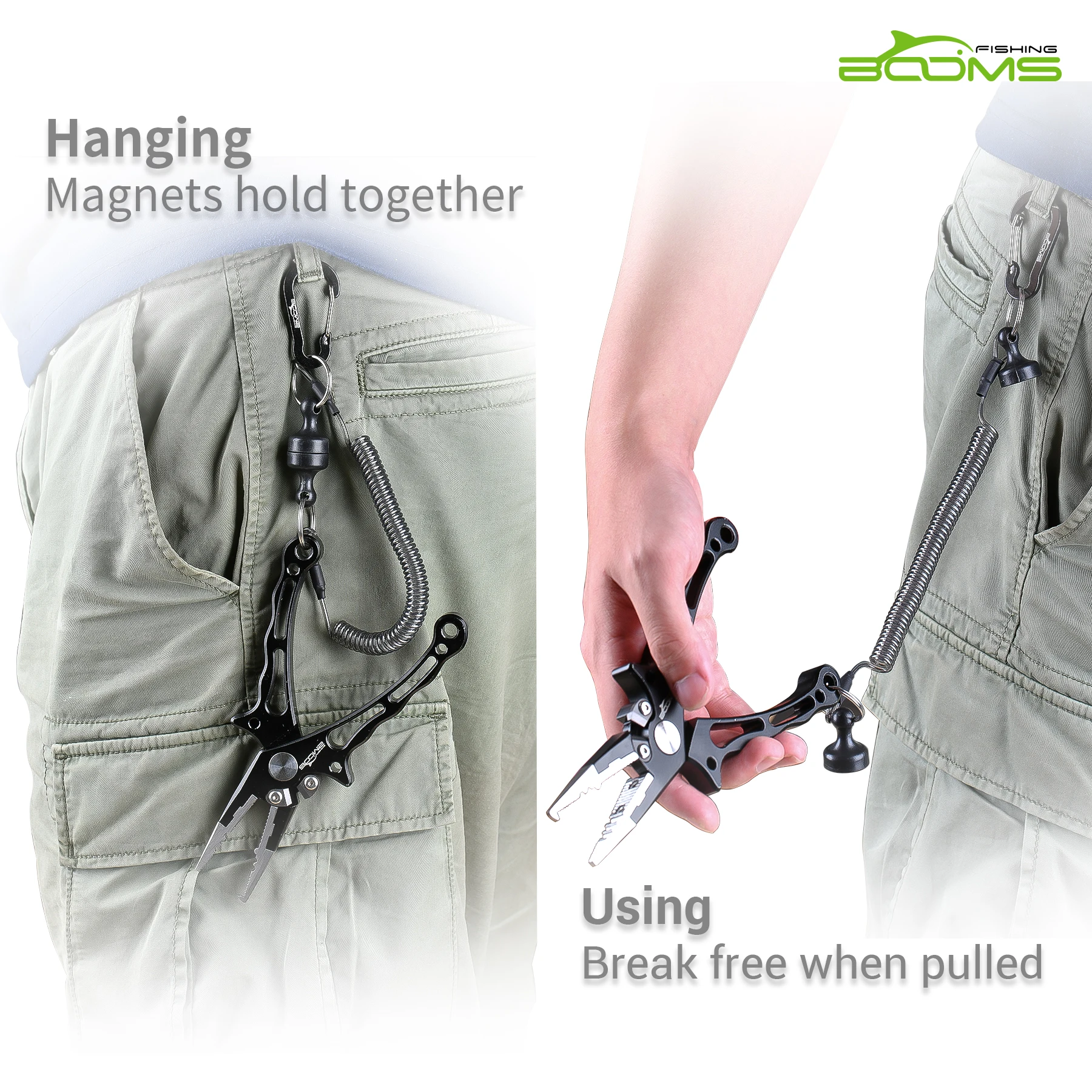 Booms Fishing MRC Сильный магнитный быстросъемный держатель сетчатый зажим с алюминиевым карабином для рыболовной катушки