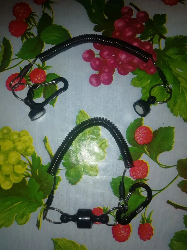 Хорошие сильные магниты и карабин/пружинный зажим. Шнурок хорошо изготовлен и крепкий, рекомендую.