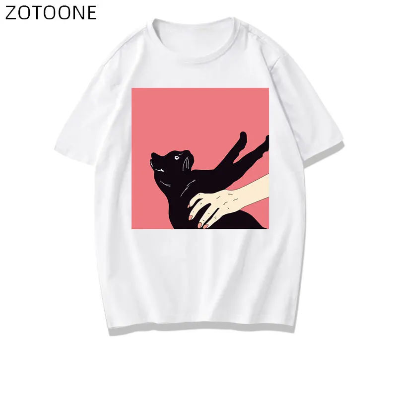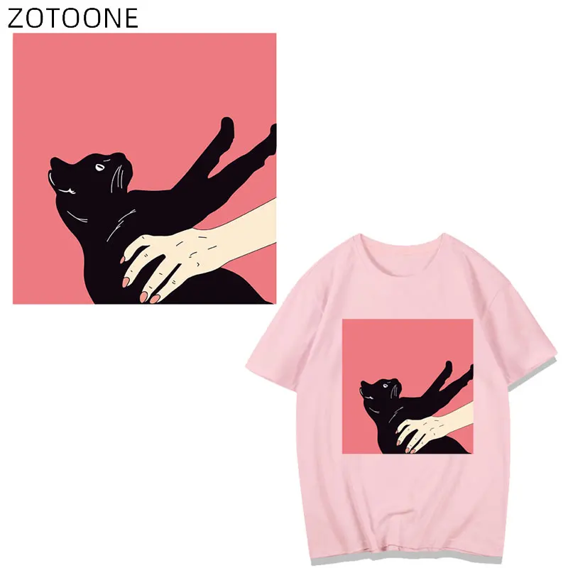 Термотрансферные нашивки ZOTOONE для одежды, футболка сделай сам с аппликацией в виде черного кота, виниловые розовые нашивки для девочек, стираемые наклейки H