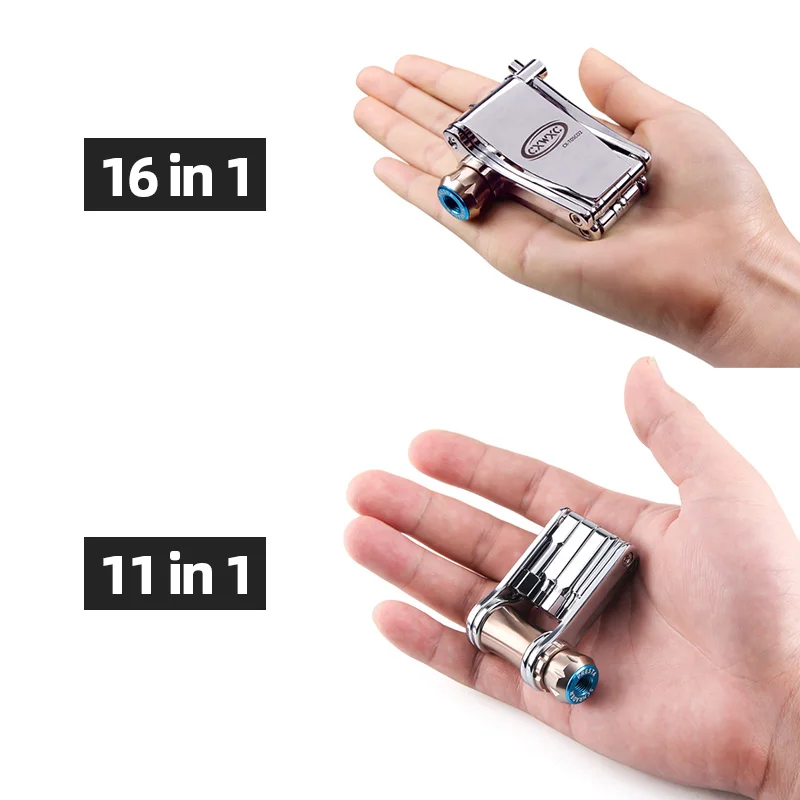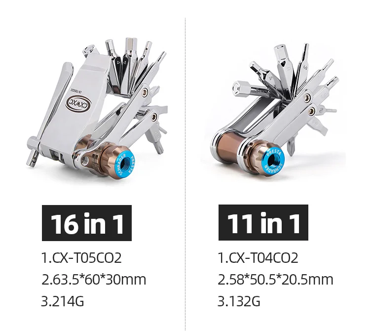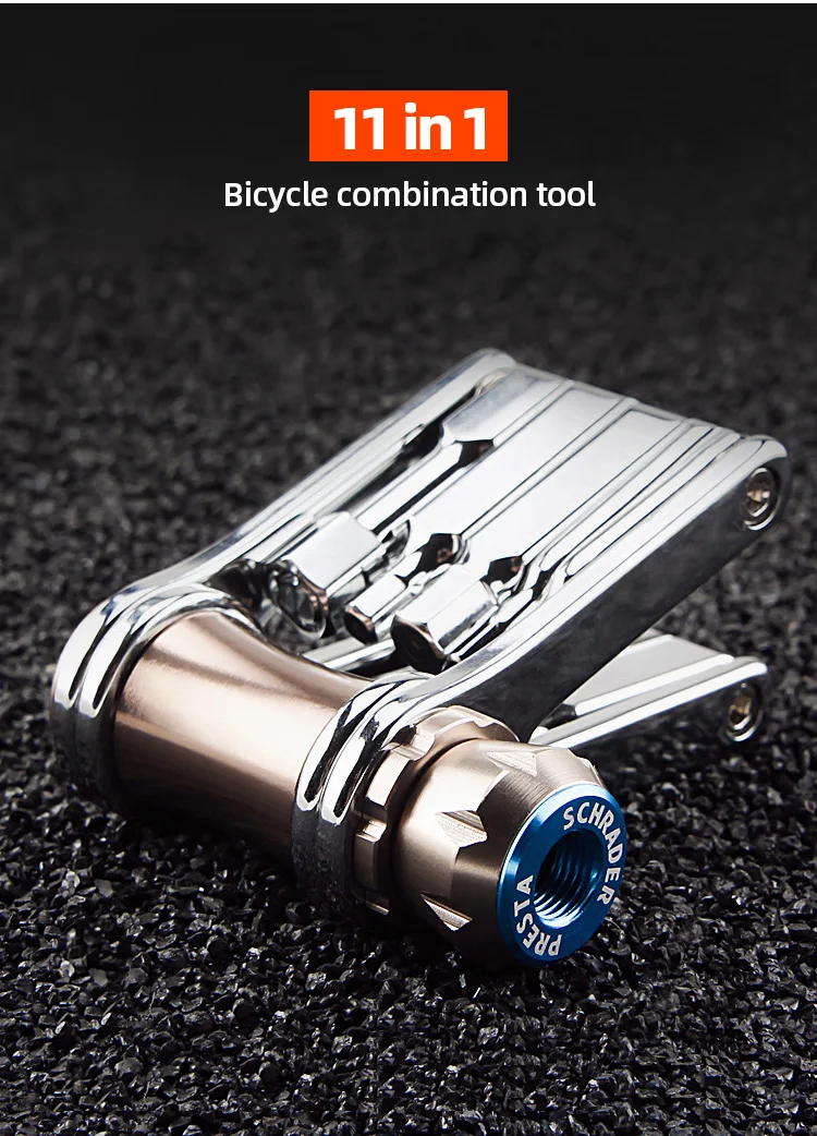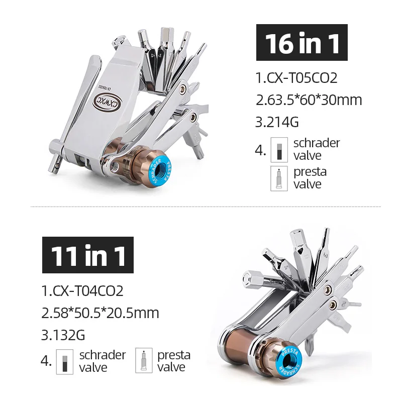 Для ежедневного использования, также можно подключить CO2 Картридж. Технические характеристики: Материал: хром-ванадиевая сталь Вес: прибл. 214/132g Комплектация включает в себя: 1 x многофункциональный инструмент для велосипеда