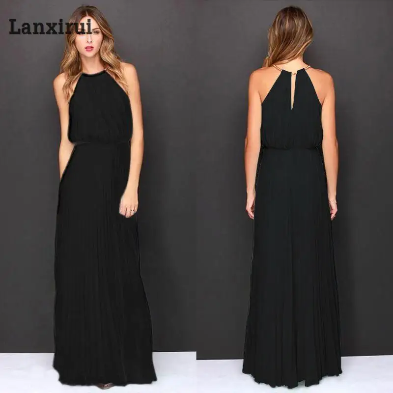 Сексуальное платье с лямкой на шее женское элегантное шифоновое платье, без рукавов, в пол, Длина Выходные туфли на выпускной вечерние платья Ever Pretty