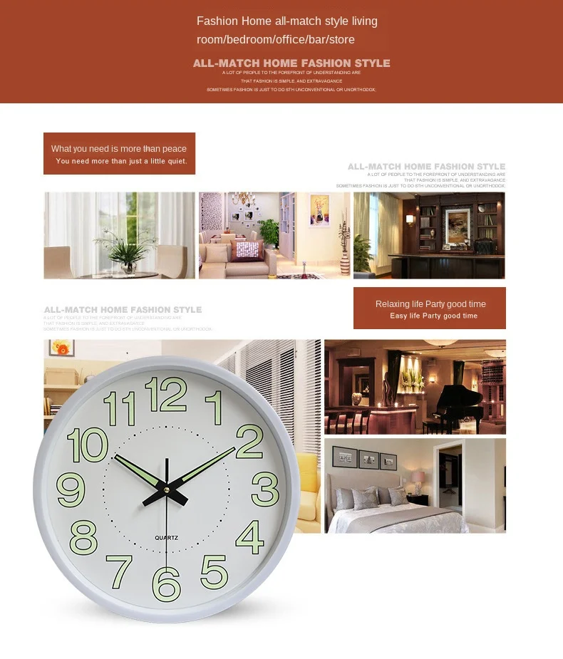 Светящийся ночник, настенные часы, современные кварцевые часы, настенный Декор для дома, бесшумные часы для спальни, гостиной, кухни, часы FZ901