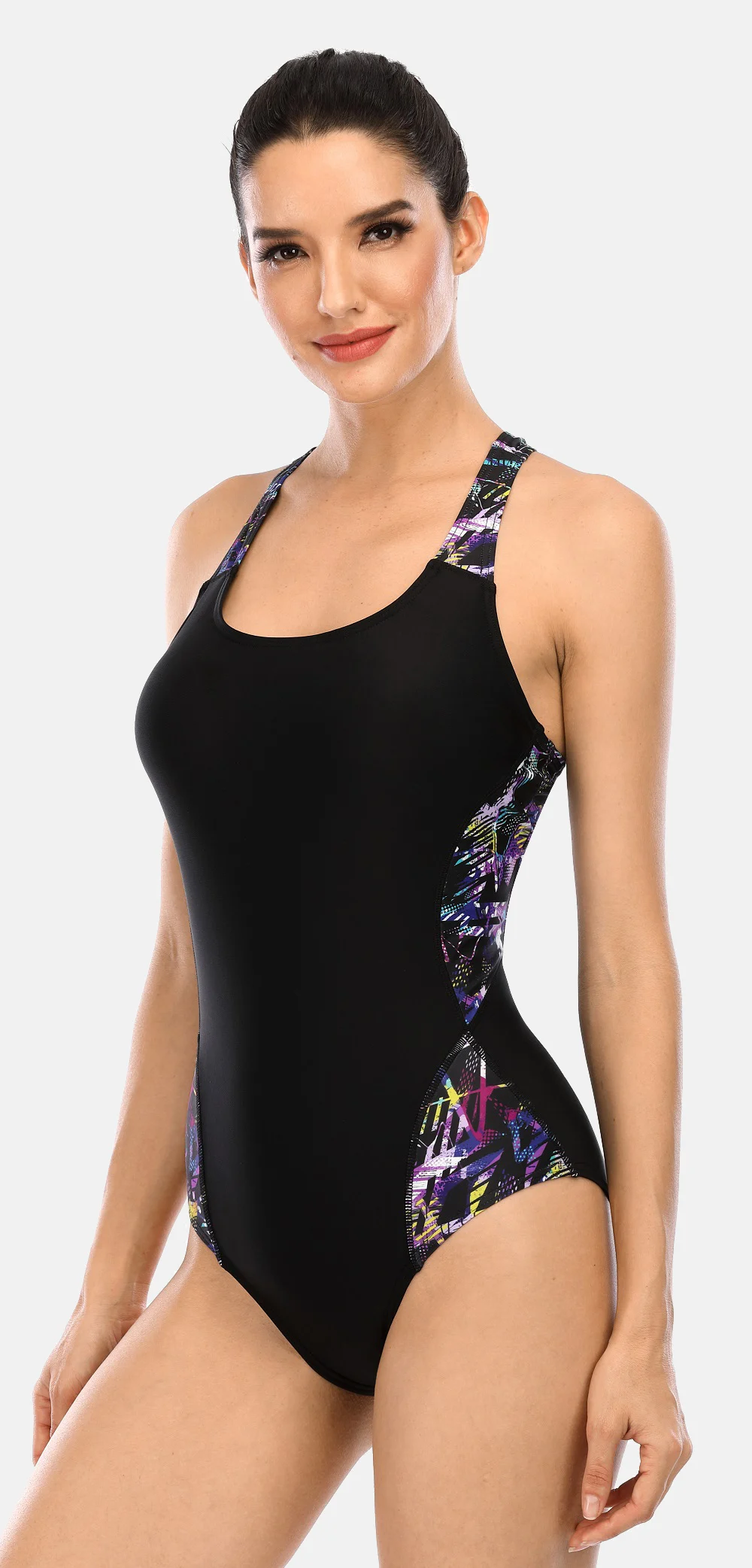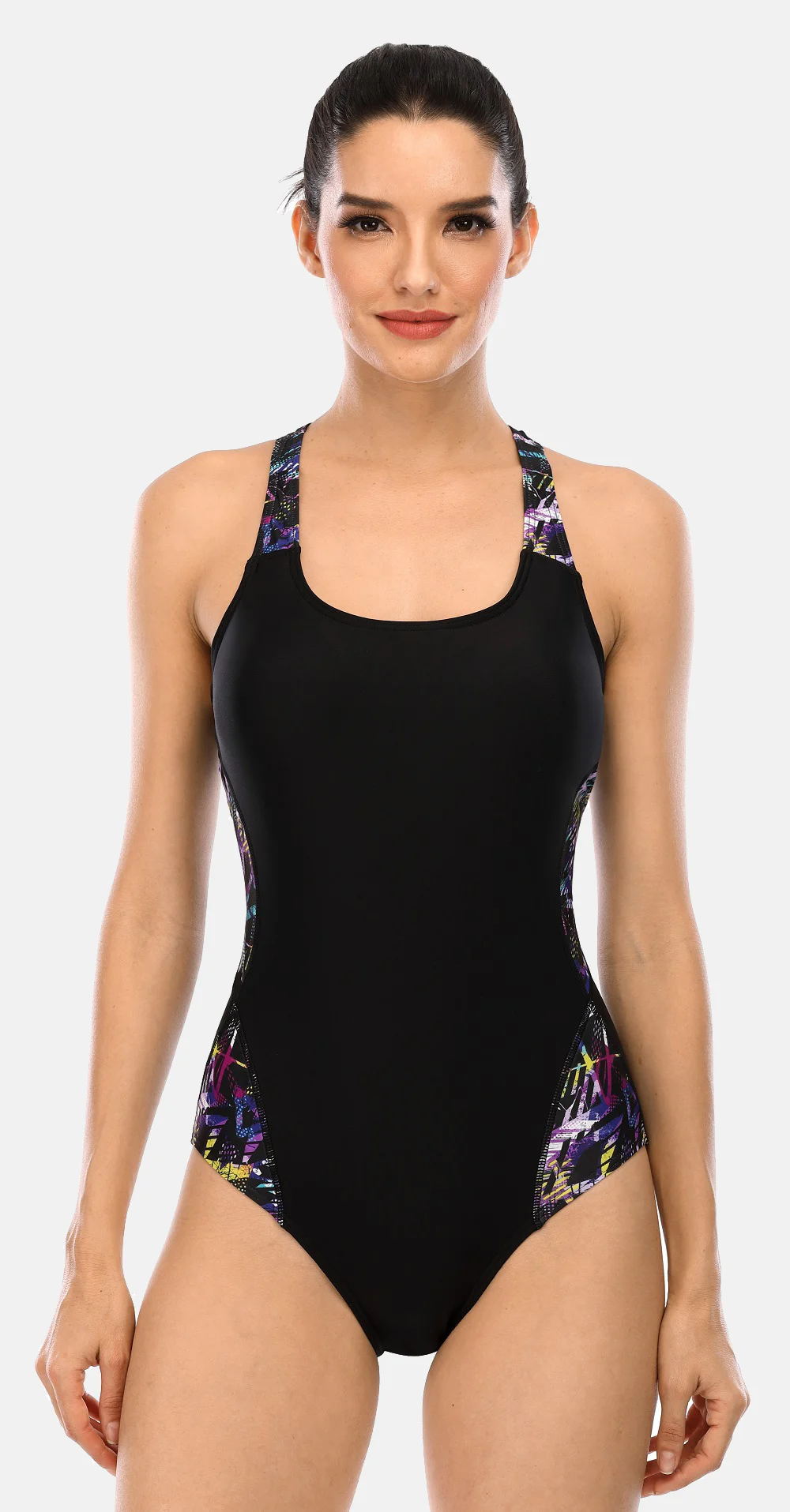 Charmleaks Женский цельный спортивный купальник, профессиональный спортивный купальник с цветными блоками, с принтом, пляжная одежда, купальный костюм