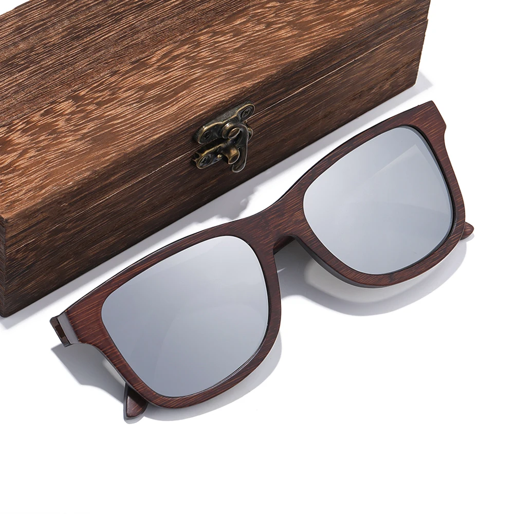 Очки солнцезащитные из бамбука, с поляризацией и зеркальным покрытием