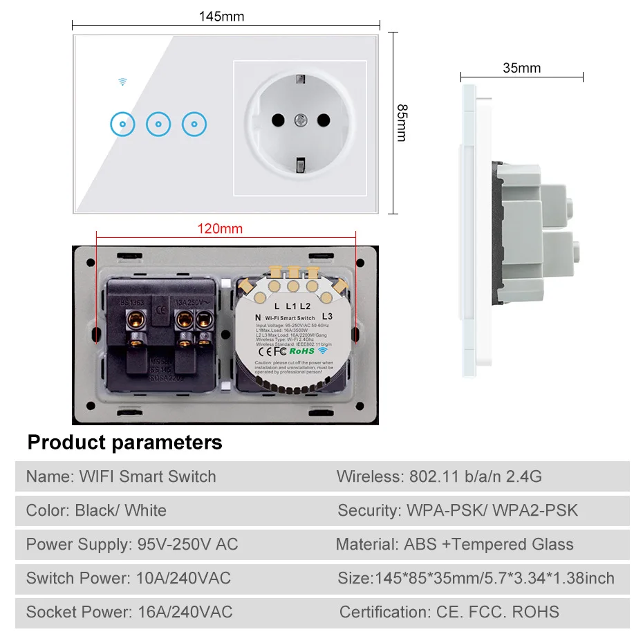 Сенсорный экран из закаленного стекла для этого интеллектуального выключателя «сделай сам» чувствителен к сенсорному управлению, благодаря тщательному тестированию прочный стеклянный материал премиум-класса обеспечивает до 20 миллионов касаний.