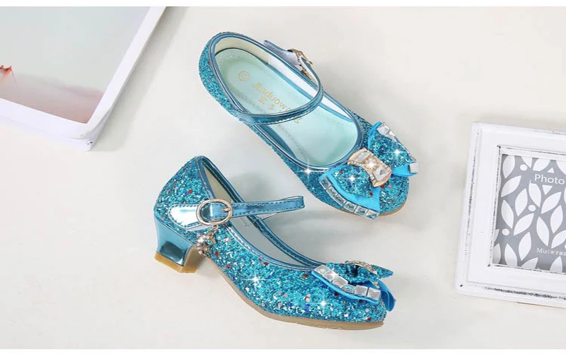 Детские кожаные туфли принцессы для девочек; Повседневные блестящие Летние босоножки на высоком каблуке с цветочным принтом и бантом-бабочкой для свадьбы и вечеринки