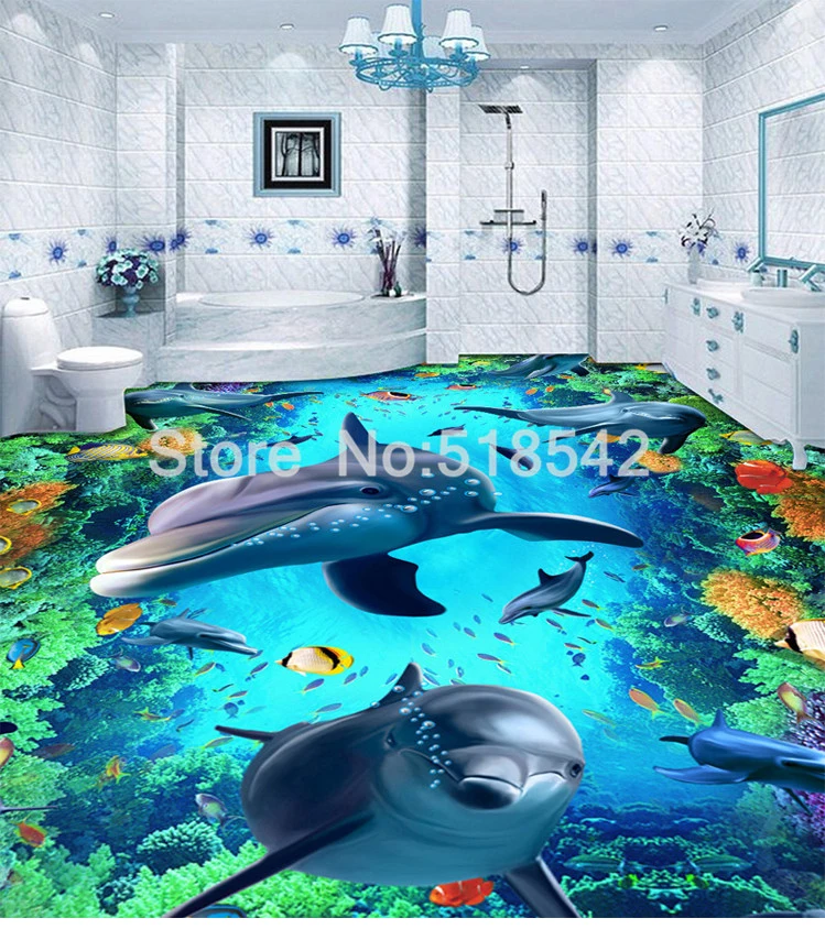 Пользовательские 3D Пол Стикеры Ocean World Дельфин Туалеты Ванная ...