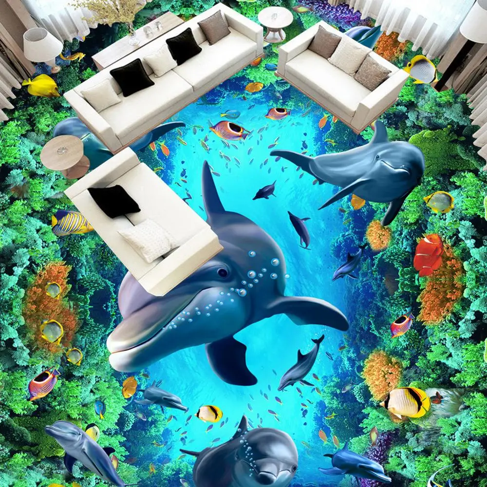 Пользовательские 3D Пол Стикер подводный мир Дельфин фото обои водо...