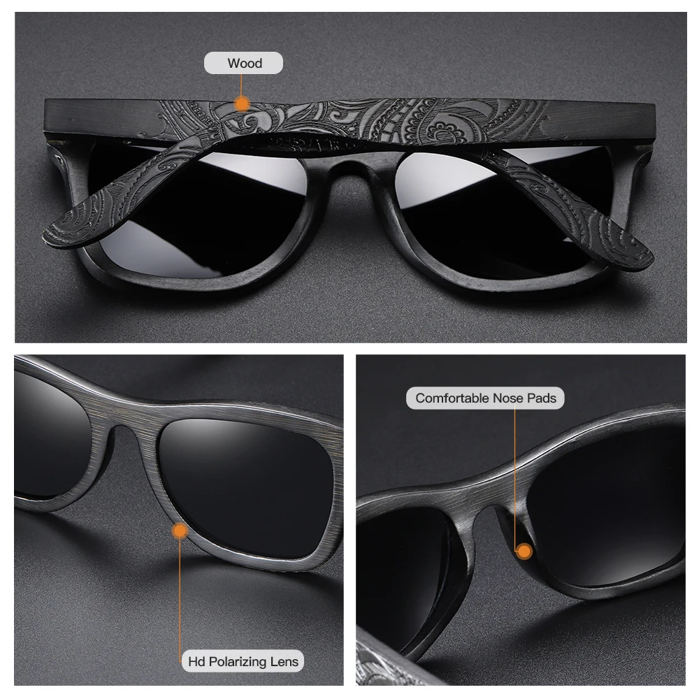 Очки солнцезащитные Мужские поляризационные в деревянной оправе, с бамбуковой оправой