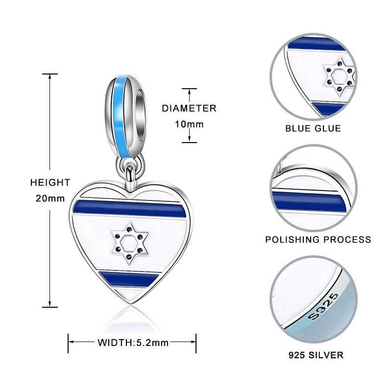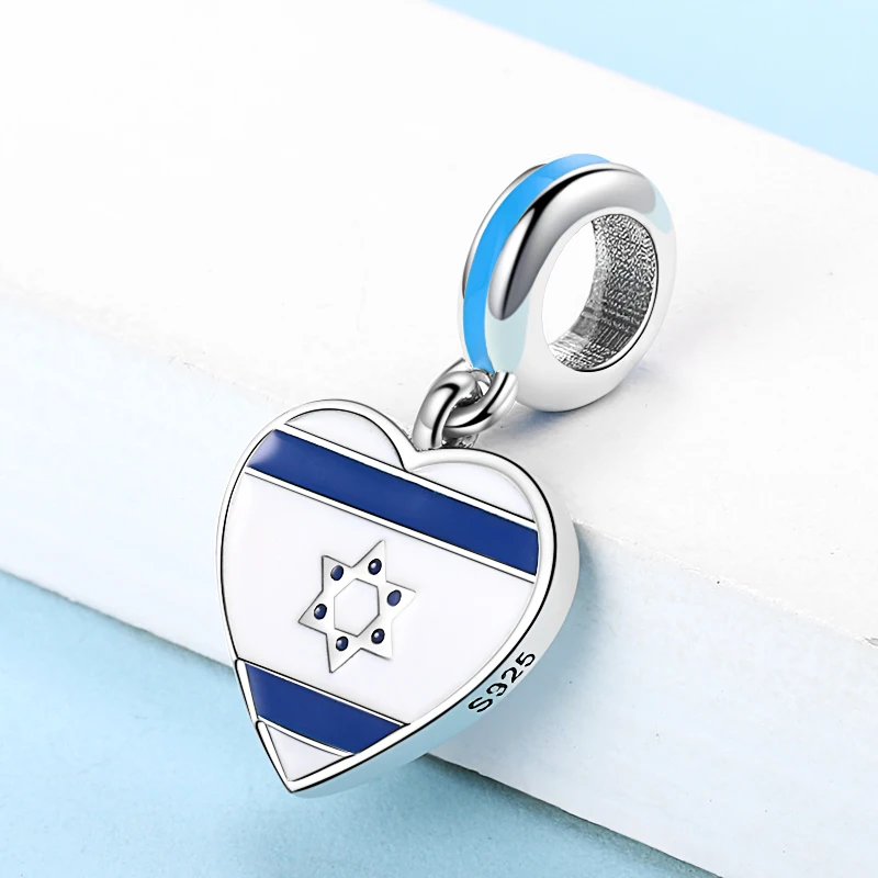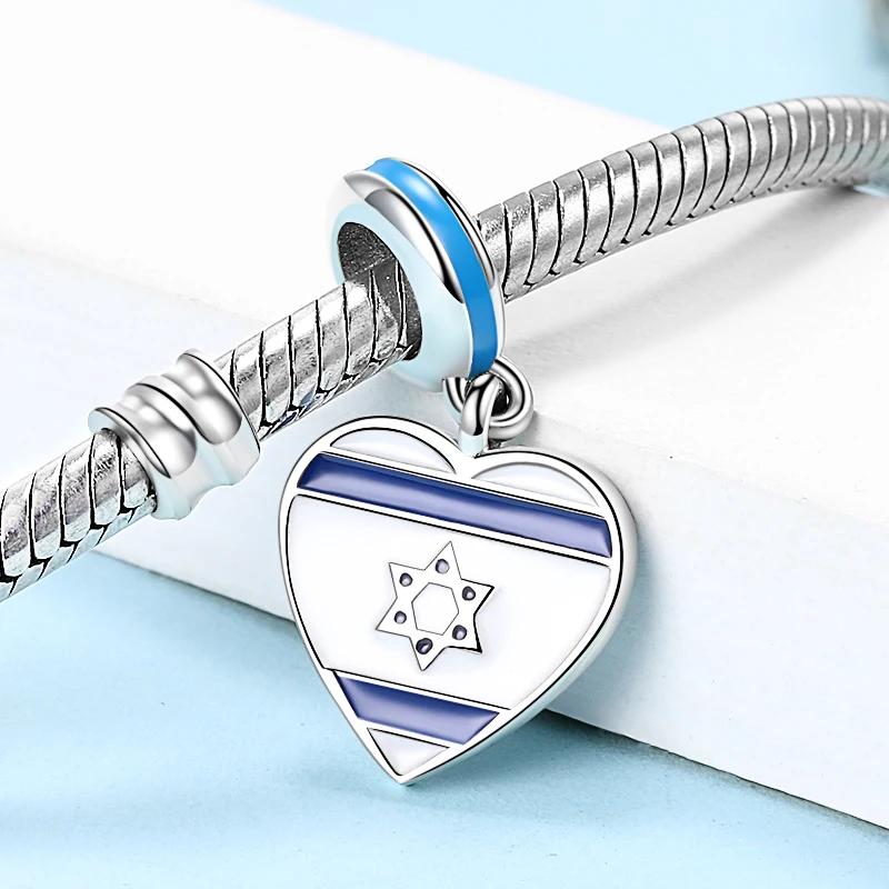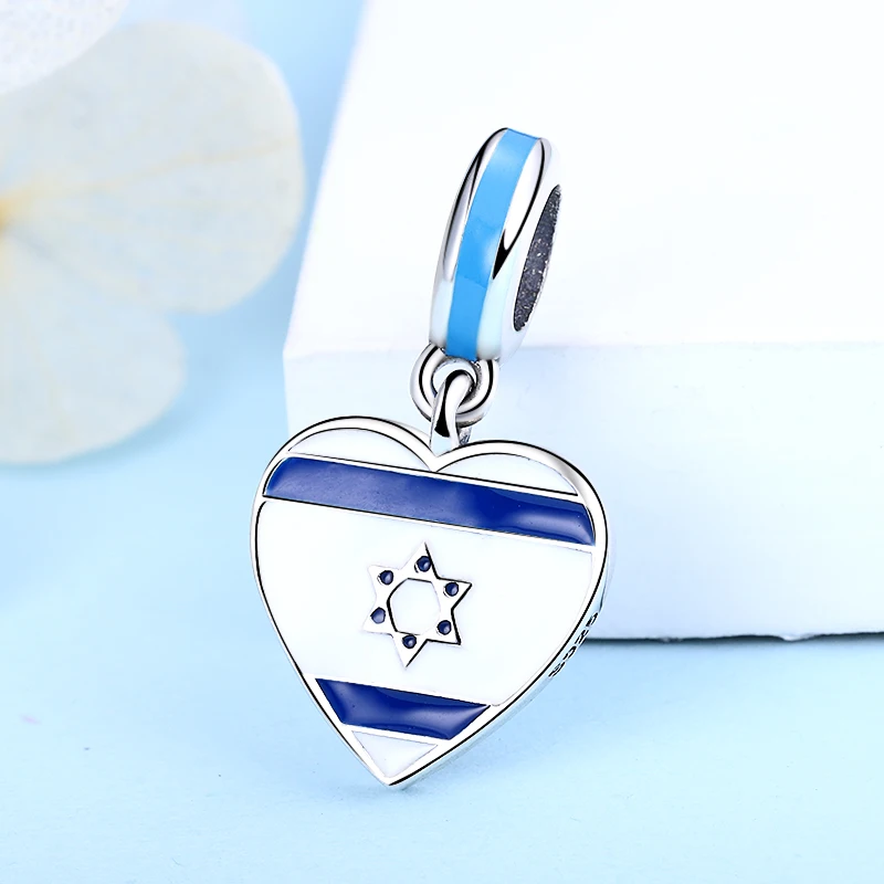 Бусина-шарм Женская из серебра 925 пробы, в форме флага Израиля