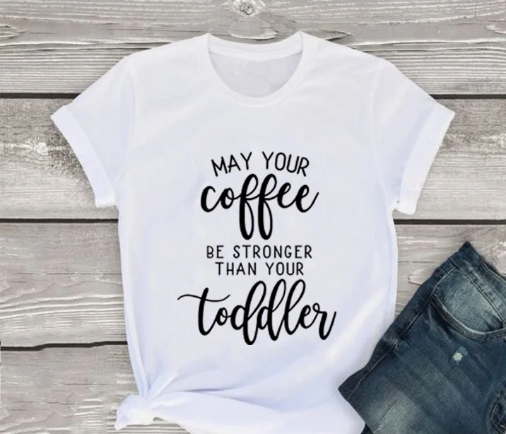 Да, ваш кофе будет сильнее, чем ваш малыш, рубашка подарок для новой мамы, футболка, кофе, Lover, рубашки, Mom Life, Женская графическая футболка