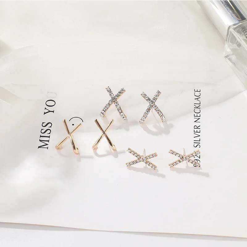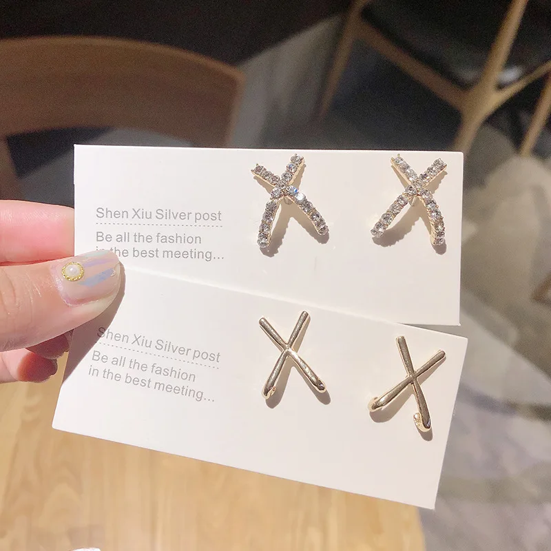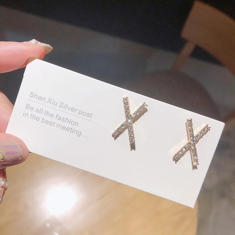 Женские корейские серьги-гвоздики, изысканные серьги-гвоздики с буквенным крестиком и цирконием, Ювелирное Украшение в подарок, S925