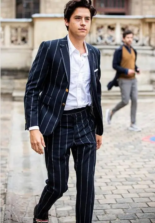 Высококачественный Свадебный мужской костюм в полоску, модный прита...
