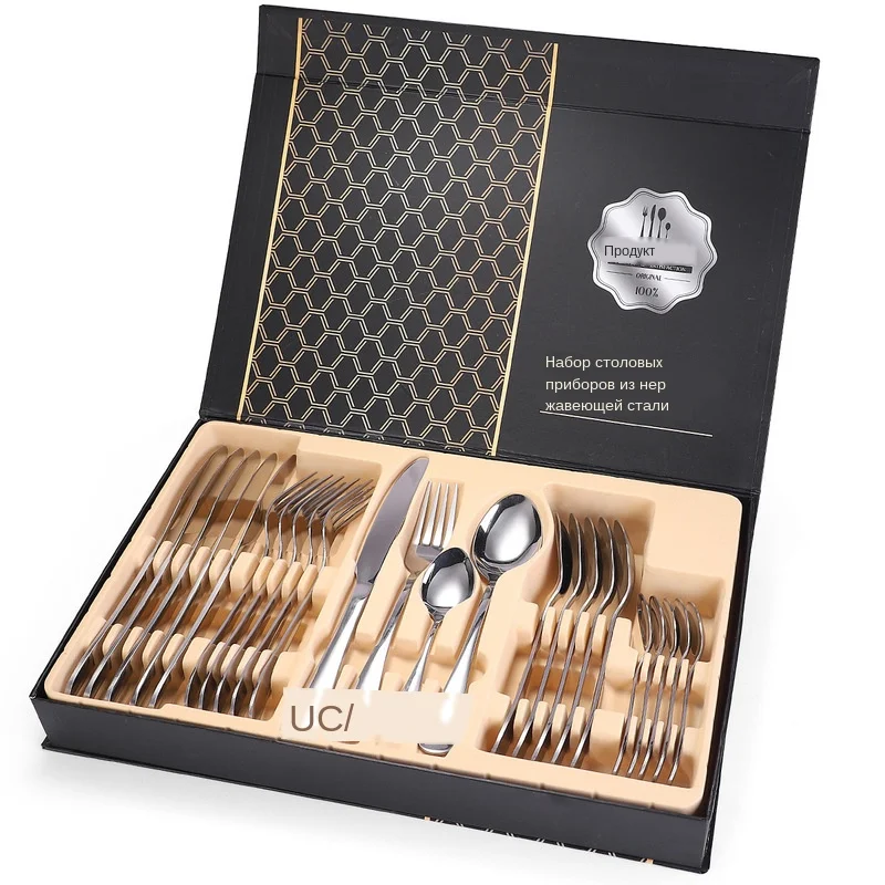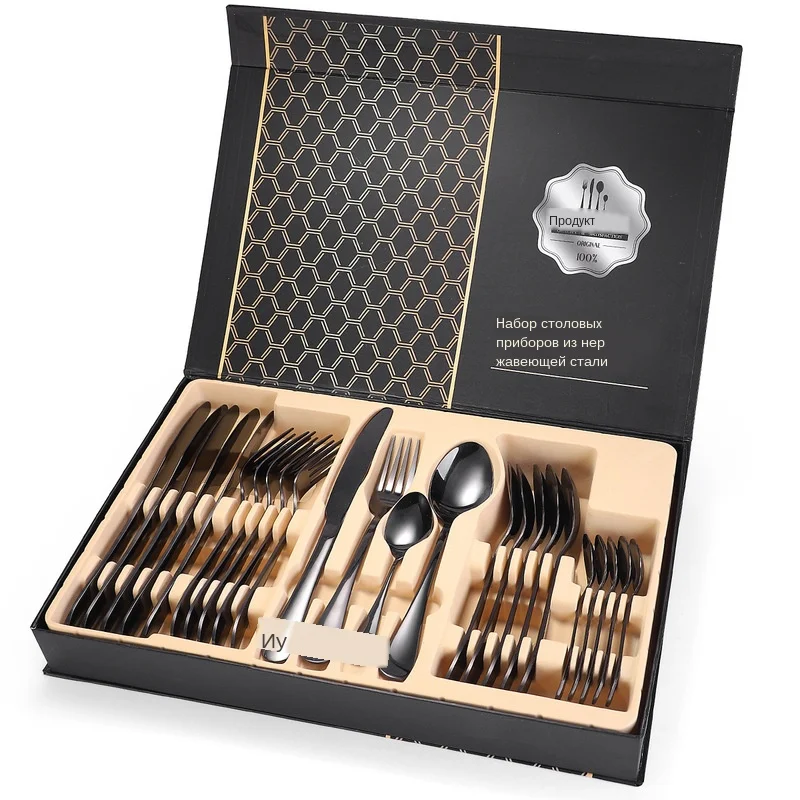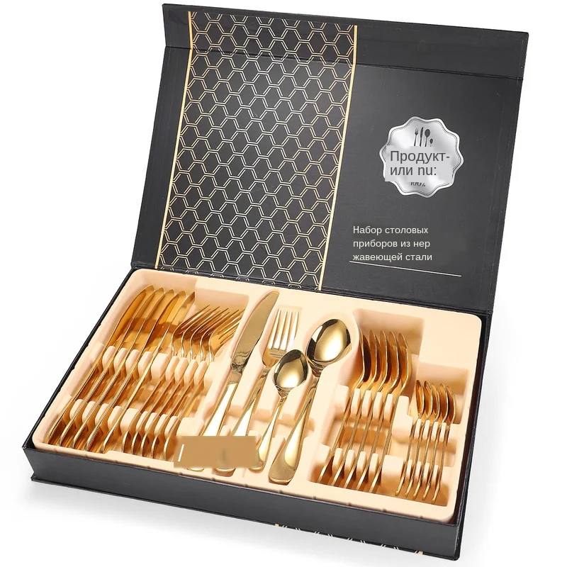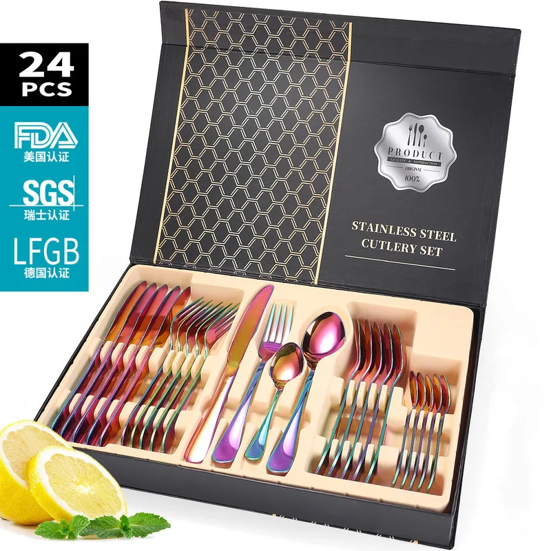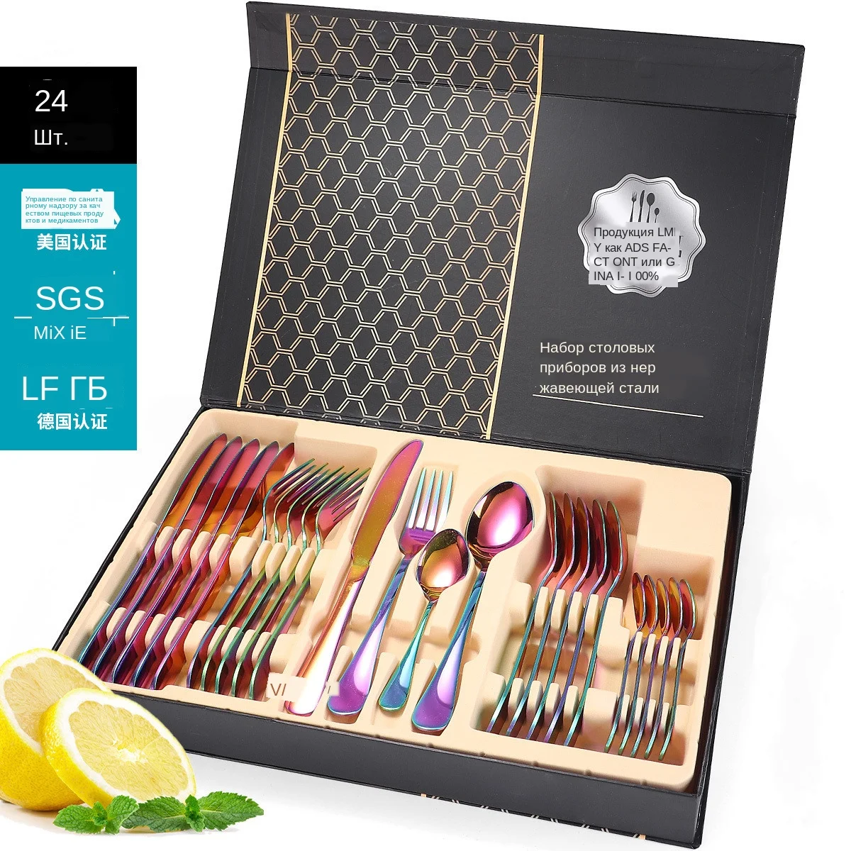 Нож для стейка из светильник стали, 24 шт.компл., золото, вилка, кофейная ложка, комплект столовых приборов для ресторана