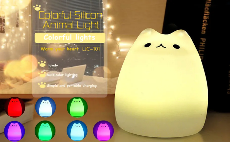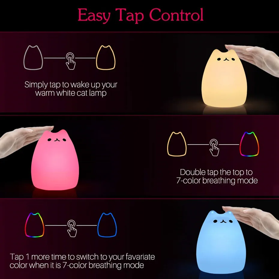 Милый силиконовый светодиодный ночсветильник для маленьких детей, лампа в виде кошки с сенсорным датчиком и дистанционным управлением, украшение для комнаты, праздничный подарок, игрушка