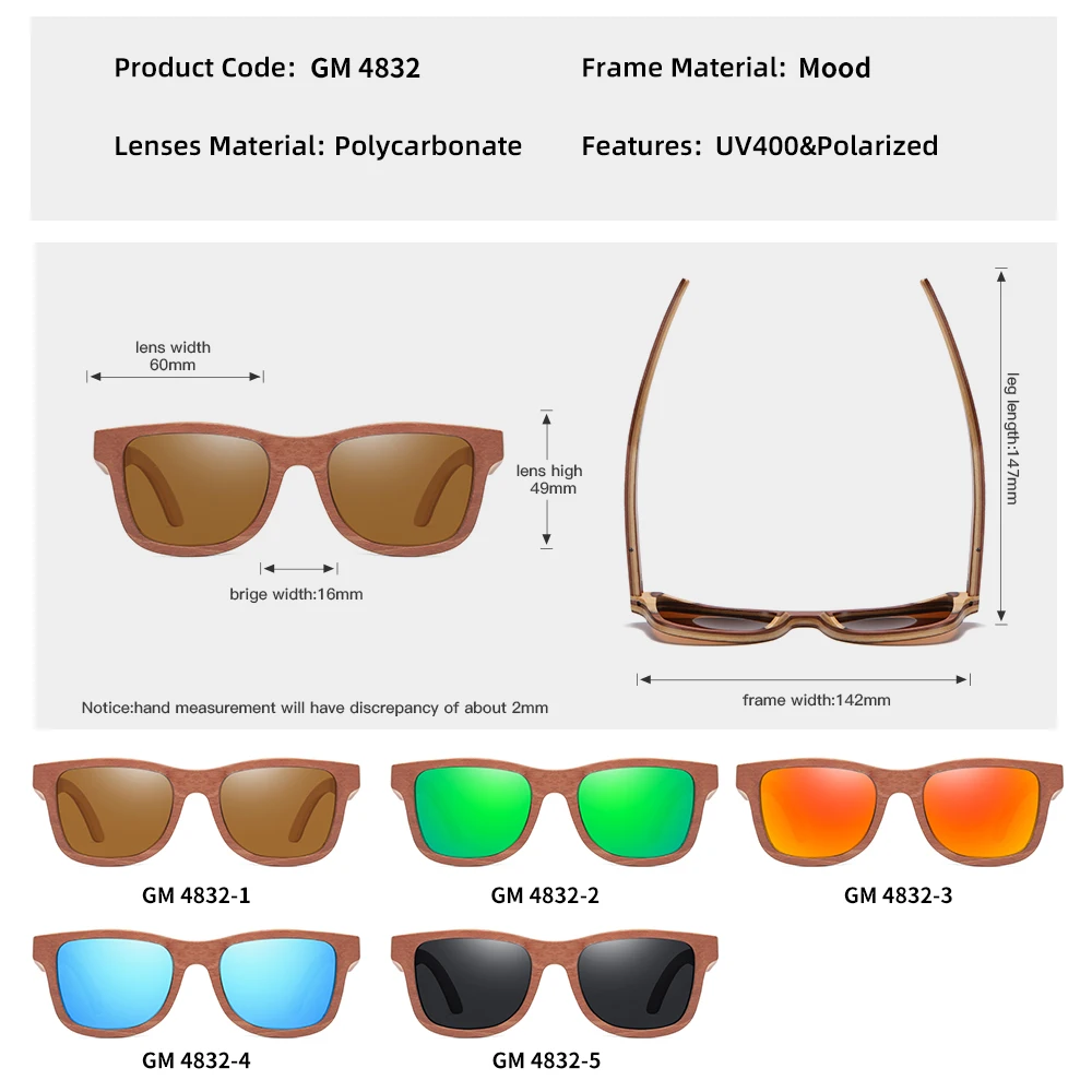 Деревянные солнцезащитные очки унисекс GM, бамбуковые солнцезащитны...