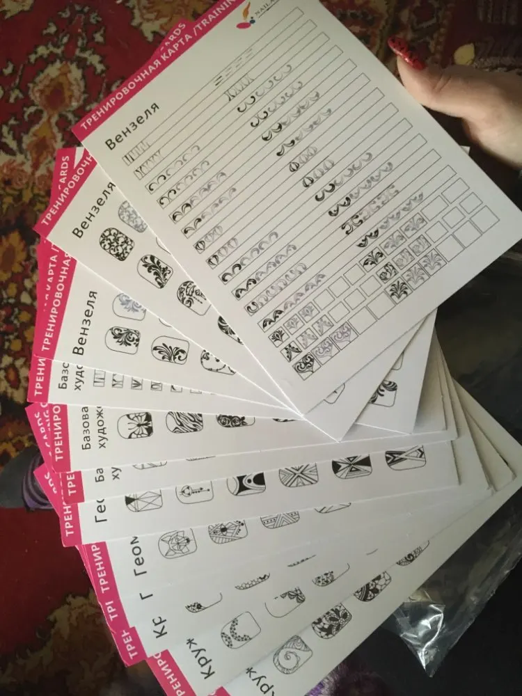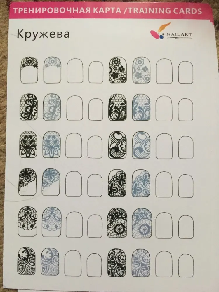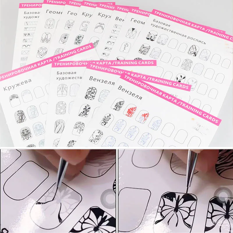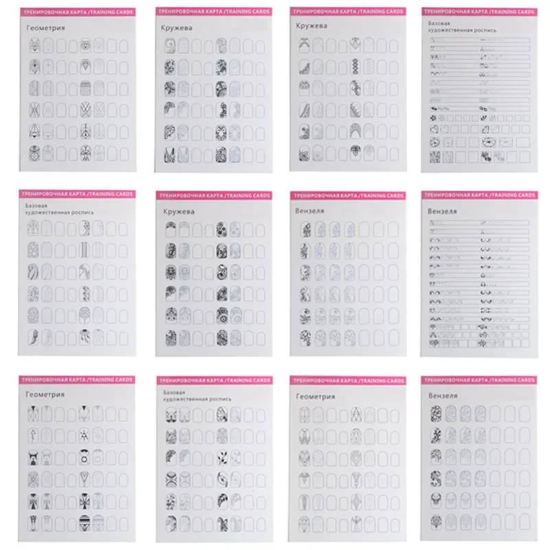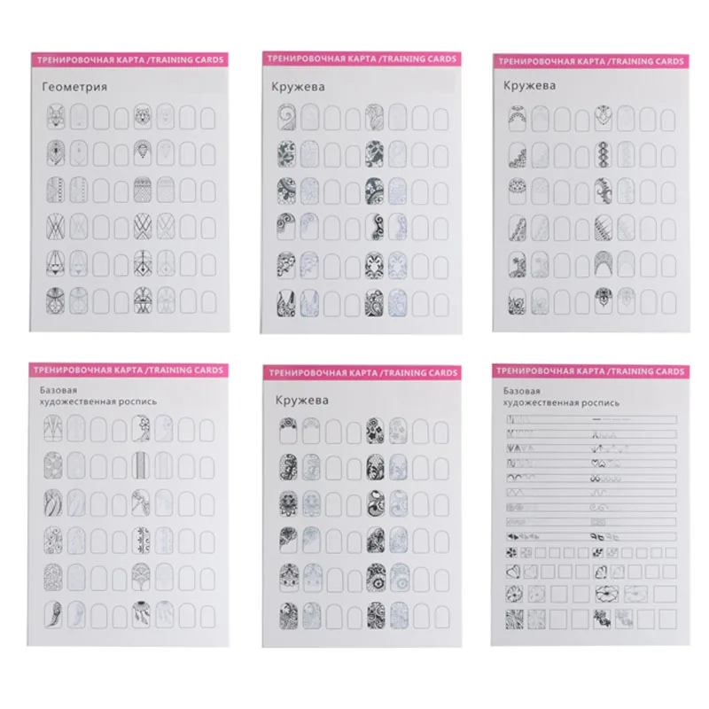 Особенности: 1. Подходит для начинающих ногтей или маникюрной новой практики. 2. Просто и просто использовать, избегайте проблем с практикой ногтей. 3. Сначала можно создать узор на тетради, а затем сделать проверку, сэкономить деньги. 4. Доступны различные типы практики ногтей на выбор. 5. Различные узоры можно практиковать в соответствии с разными типами ногтей.