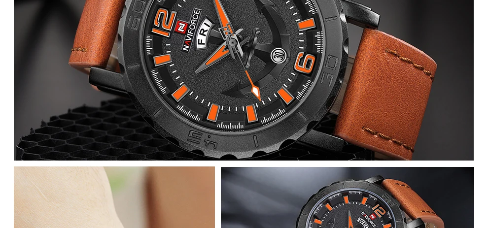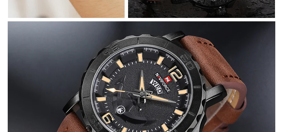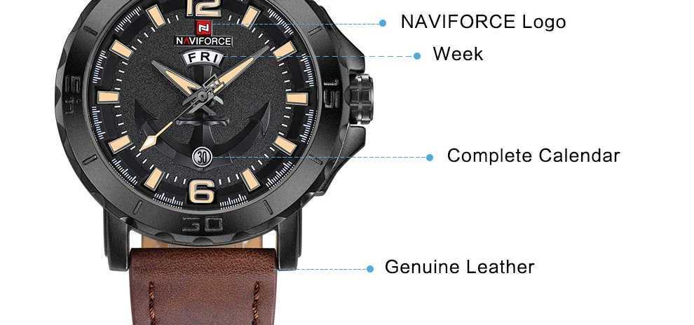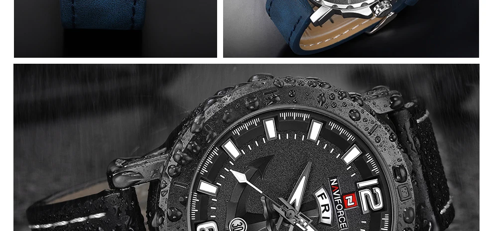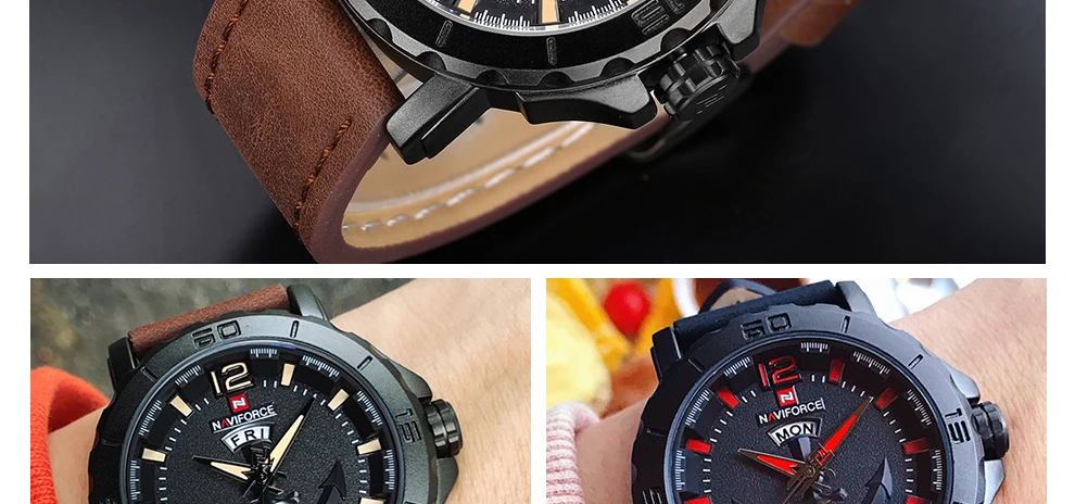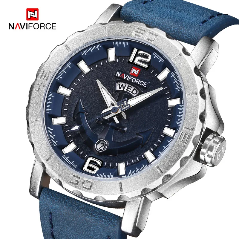 Часы NAVIFORCE Мужские Аналоговые, водонепроницаемые повседневные Роскошные Спортивные кварцевые в стиле милитари, с кожаным ремешком, с датой